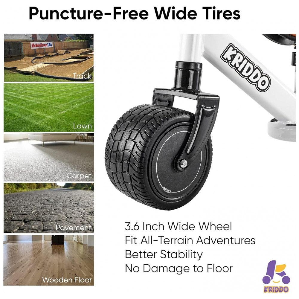 MELHOR PRESENTE DE ANIVERSÁRIO DE PRIMEIRO ANO KRIDDO sem pedal bicicleta de equilíbrio para bebês de 1 ano equipa estrutura robusta, guidão antiderrapante macio, assento largo de PU macio, roda traseira de TPU totalmente alargada, permite que seu bebê a use por um longo tempo com conforto. A bicicleta de equilíbrio para bebês KRIDDO é um ótimo brinquedo de transição quando o bebê está aprendendo a andar, é o melhor presente de aniversário de primeiro ano para meninas e meninos.