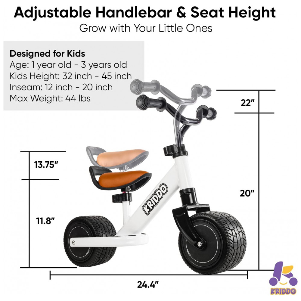 Bicicleta sem Pedal para Crianças de 1 a 3 Anos KRIDDO Branca