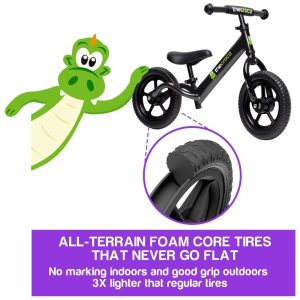 PNEUS ULTRALEVES SEM FURO Usamos pneus de espuma que são 5 vezes mais leves que os pneus de borracha comuns e duram anos. Uma bicicleta leve é a característica mais relevante para uma criança pequena, é isso que a deixa confortável para começar a aprender a se equilibrar. Leve a bicicleta preferida do seu filho para todo o lado sem ter de encher os pneus.