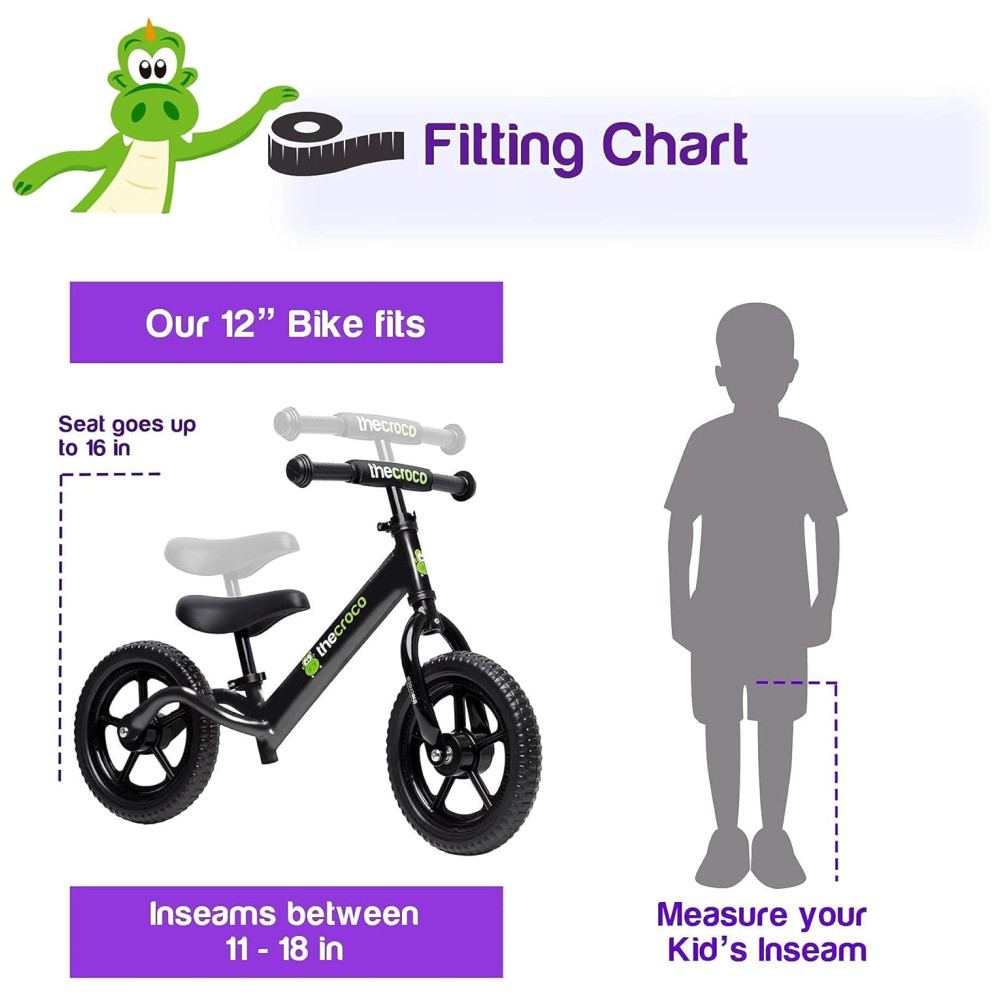 Bicicleta sem Pedal para Crianças de 2 a 5 Anos com Assento e Guidão Ajustáveis TheCroco Preta