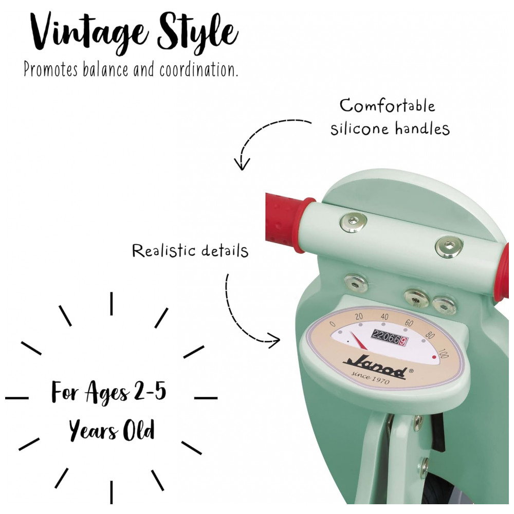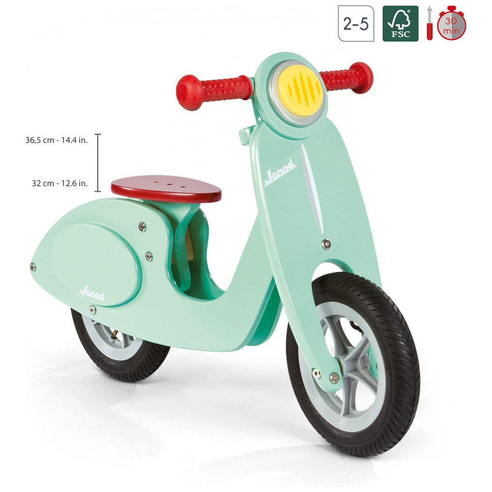 Bicicleta sem Pedal Scooter de Madeira para Crianças de 3 a 6 Anos Janod Verde