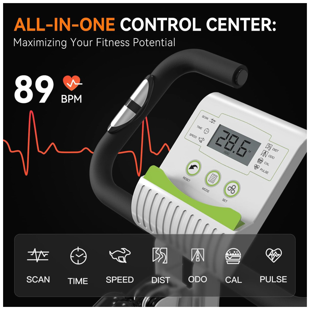 3 Equipado com uma tela LCD, esta bicicleta rastreia métricas essenciais, como tempo, velocidade e calorias queimadas