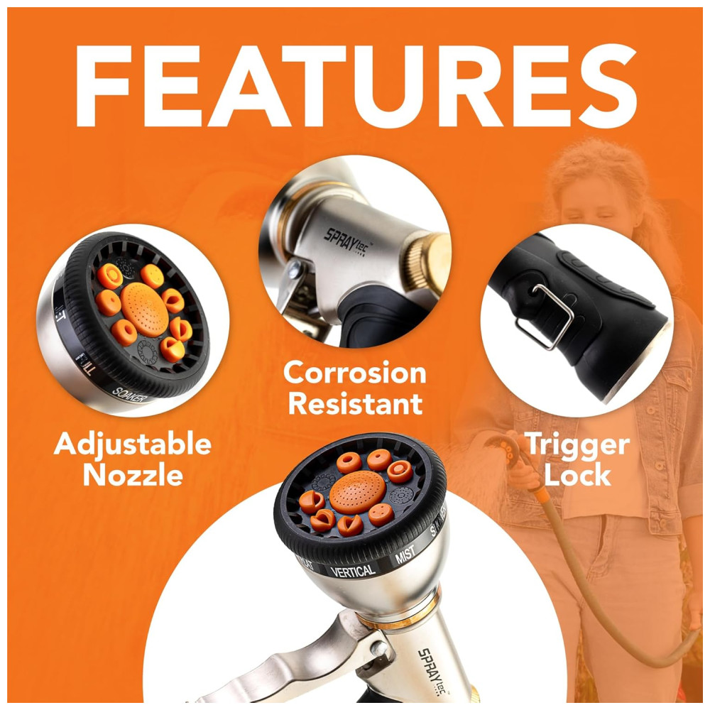 Bico de Mangueira Pulverizador 9 Padrões Ajustáveis SPRAYTEC Prateado