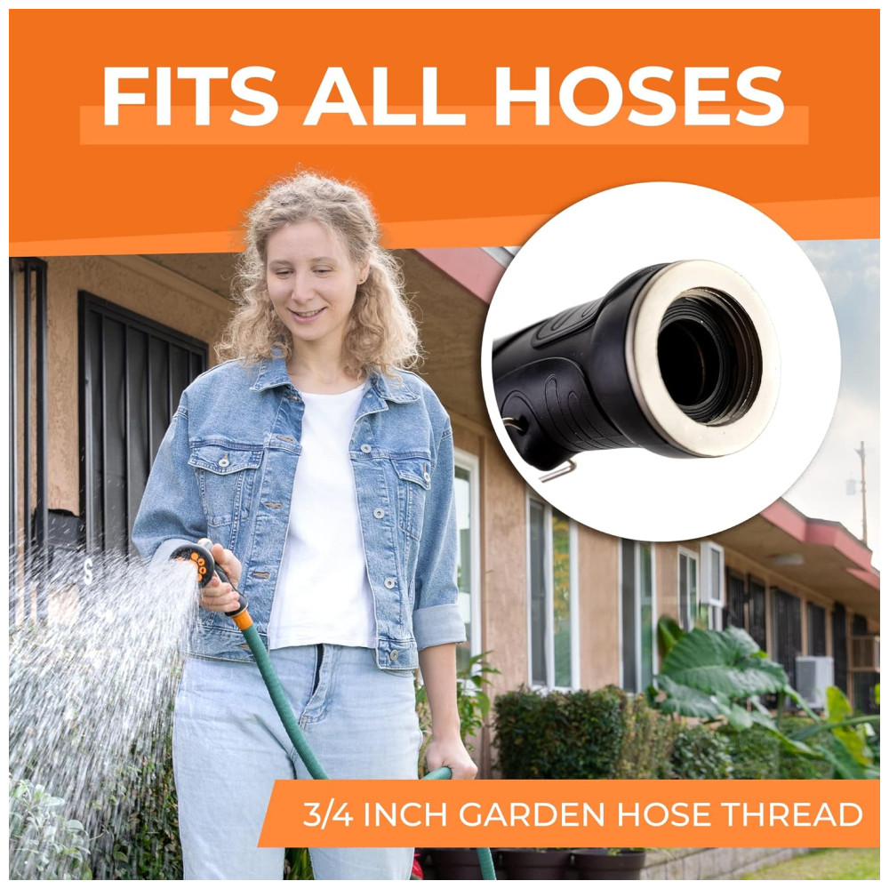 COMPATÍVEL COM SUAS MANGUEIRAS Se adapta a todas as mangueiras de jardim baseadas nos EUA Rosca de mangueira de jardim de GHT. Não são necessários adaptadores O design de uma peça e várias arruelas de anel de borracha internas fornecem uma vedação firme e durável para reduzir vazamentos. 5 arruelas de borracha resistentes GRATUITAS incluídas