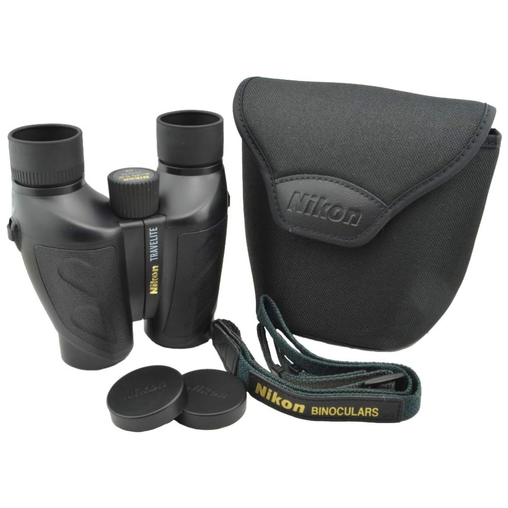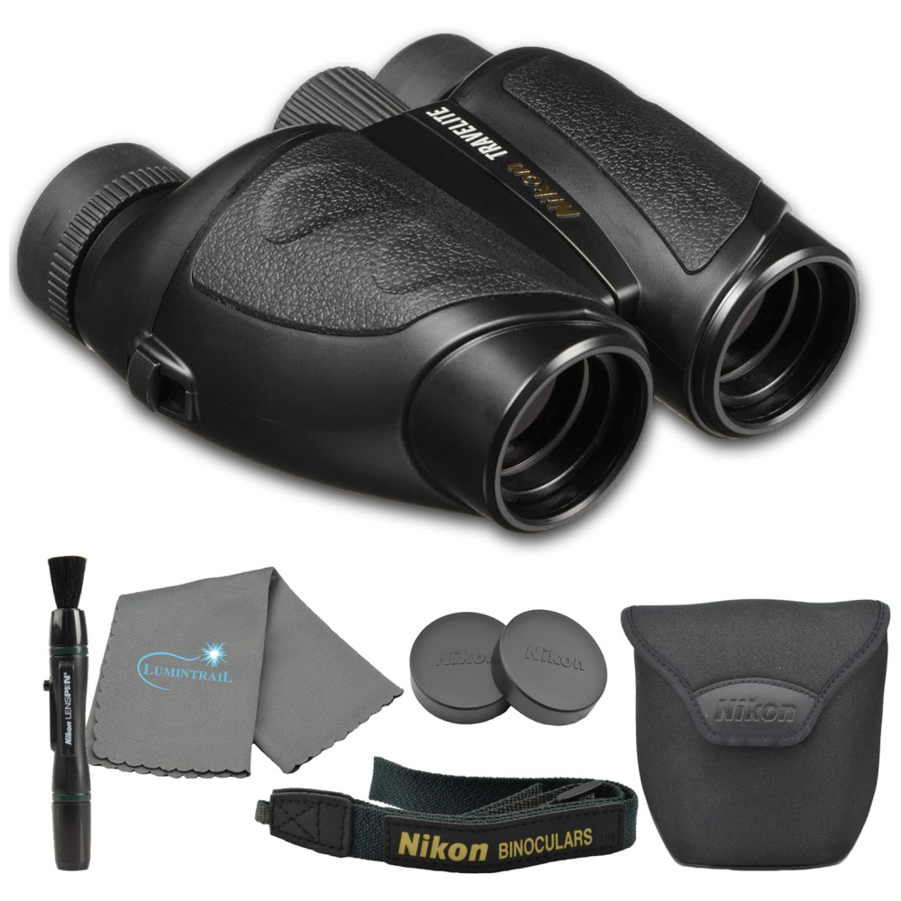 Binóculos 10×25 para Adultos com Caneta de Lente Nikon e Pano de Limpeza Lumintrail Nikon Travelite Preto