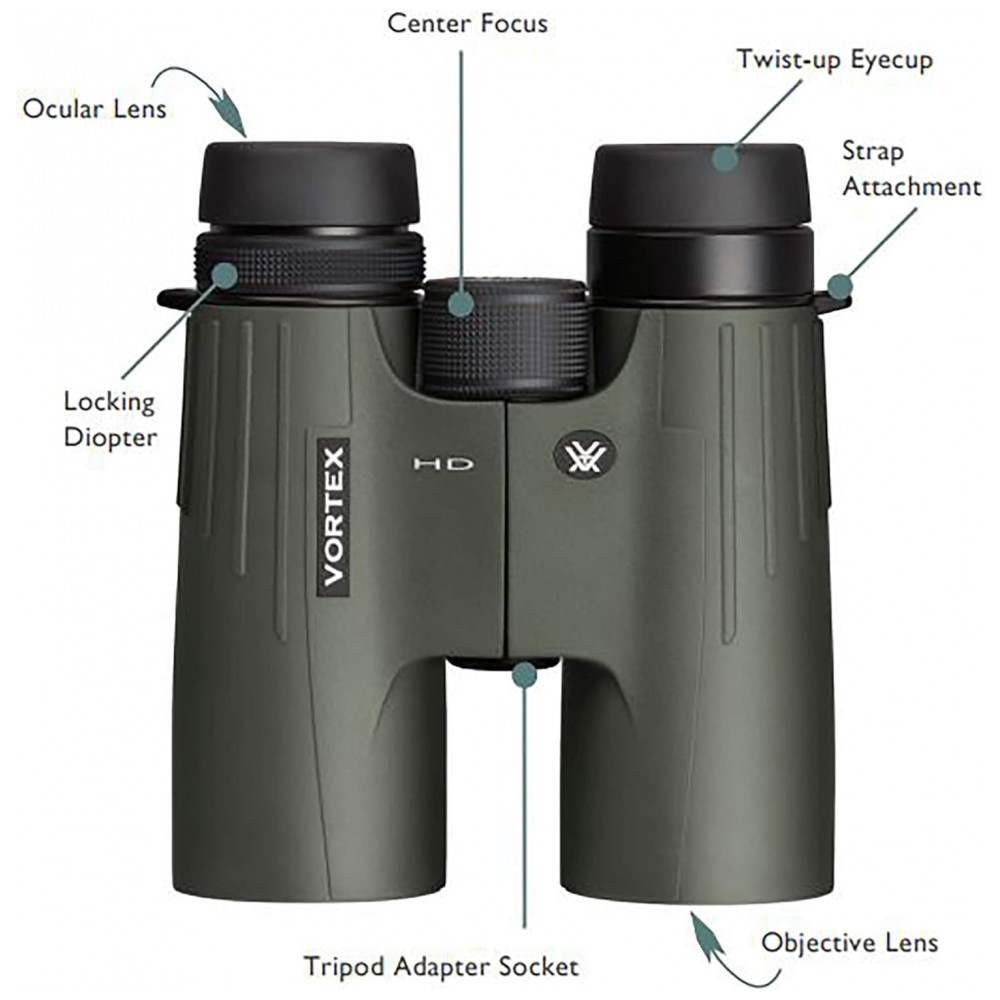 Ampliação de 10x e lentes objetivas de , os binóculos Viper HD possuem um sistema óptico avançado de alta densidade com revestimento de lente antirreflexo aprimorado para qualidade de imagem impressionante e transmissão de luz de primeira linha.