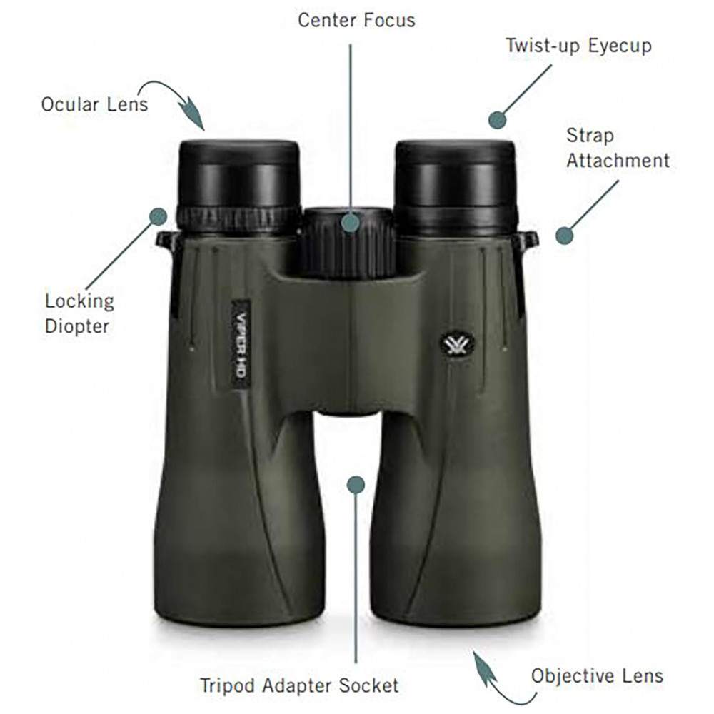Ampliação de 10x e lentes objetivas de , o Viper HD 2018 é um binóculo compacto de tamanho completo e sofisticado, adequado para qualquer caça. Um chassi blindado de borracha fácil de manusear com entalhes de polegar perfeitamente posicionados oferece ergonomia superior.