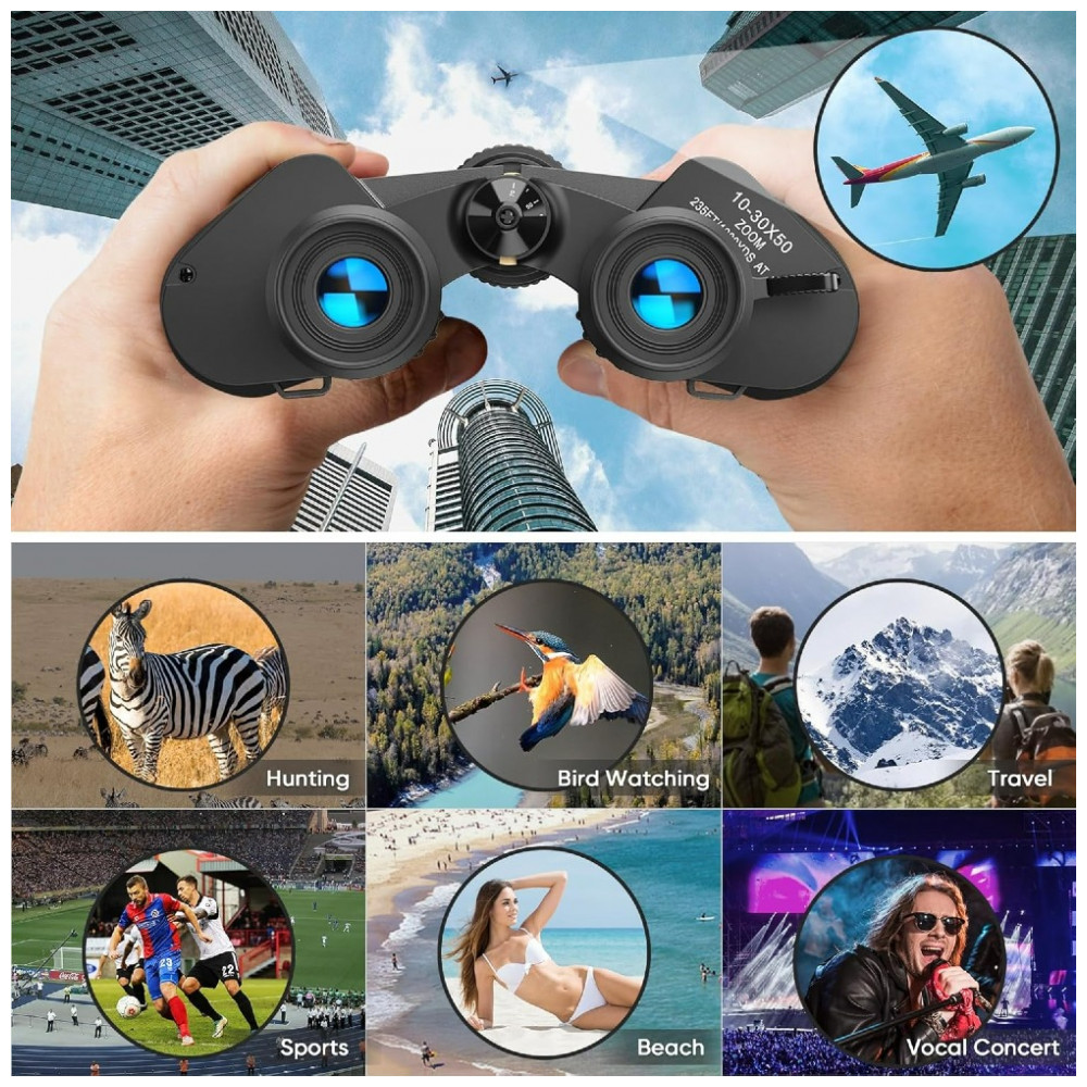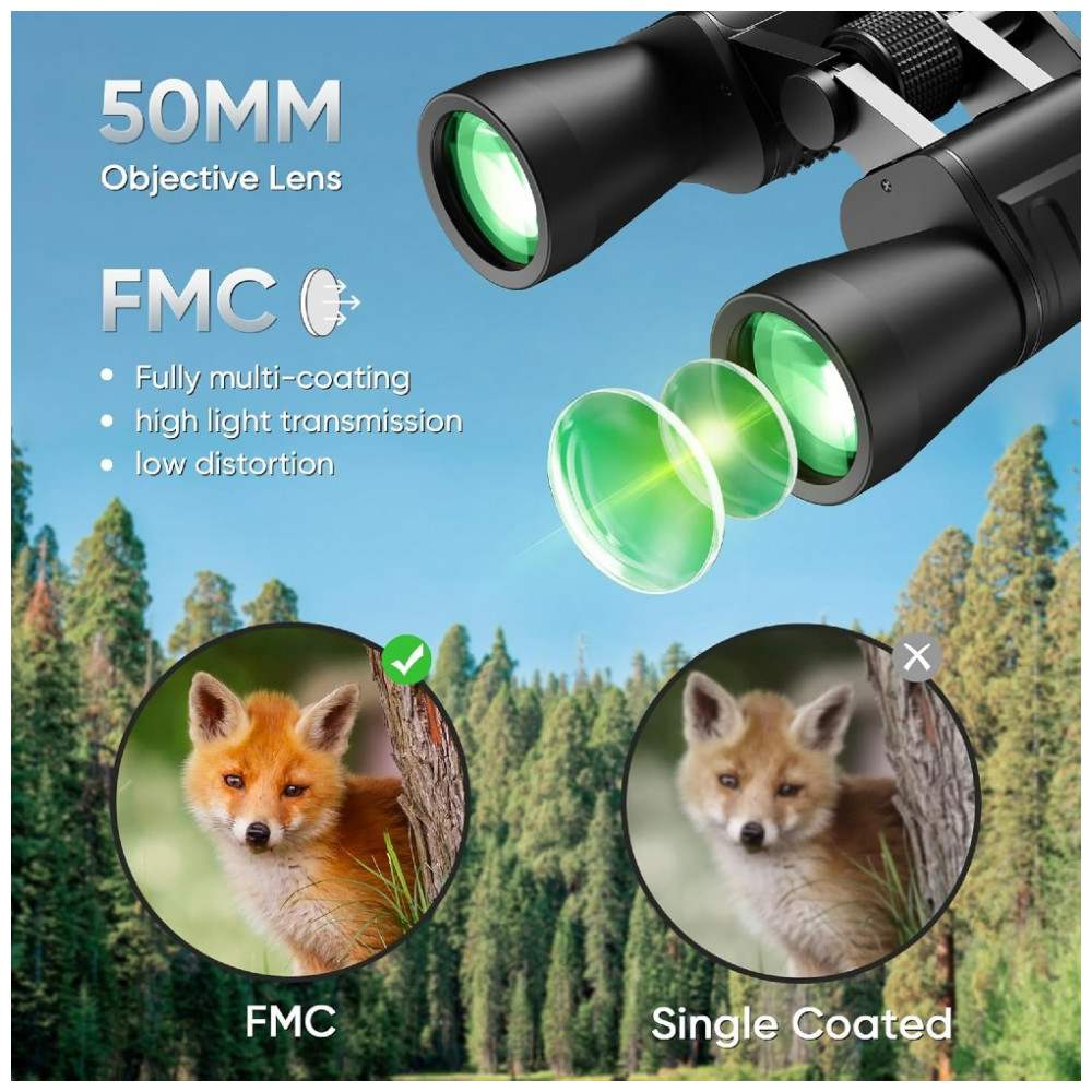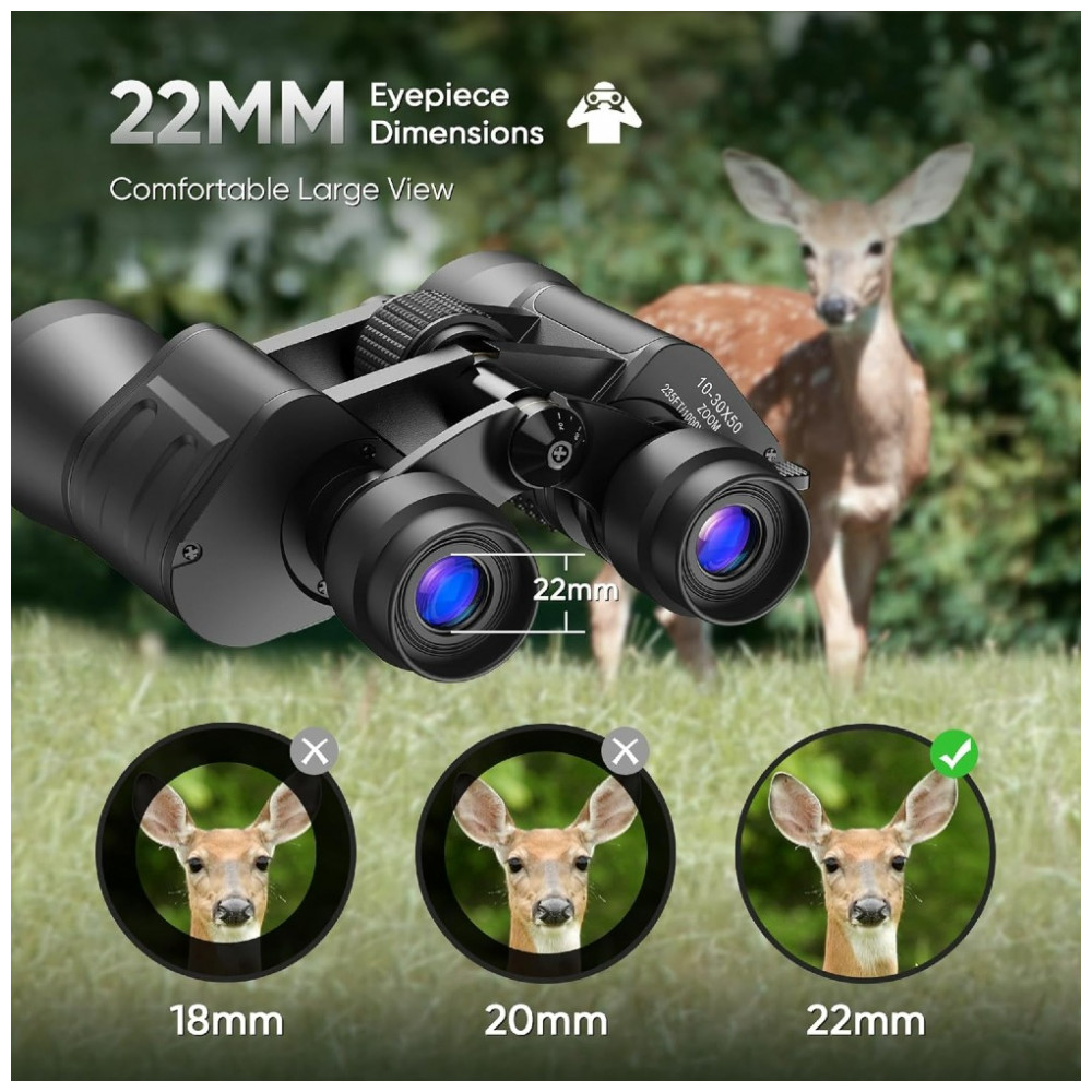 Desfrute de uma experiência visual ampla e clara com os binóculos de zoom de alta potência 1030×50. Com uma ocular de 22mm de diâmetro, esses binóculos captam mais luz para proporcionar imagens mais brilhantes. Além disso, eles vêm com uma capa protetora de silicone e materiais robustos, garantindo proteção duradoura. As lentes de 50mm FMC, prisma BAK7 e visão noturna de baixa luz oferecem imagens nítidas, com cores vivas e sem bordas escuras. Com ampliação de 1030x, distância de visualização de 235 pés a 1000 jardas e revestimento ótico corretivo, esses binóculos são ideais para observações em diferentes ambientes. Leves, à prova d’água, antideslizantes, resistentes à poeira e embaçamento, esses binóculos são perfeitos para uma variedade de atividades ao ar livre. Acompanha bolsa mensageiro, tampas protetoras de lentes, alça de transporte, instruções, pano de limpeza e os próprios binóculos.