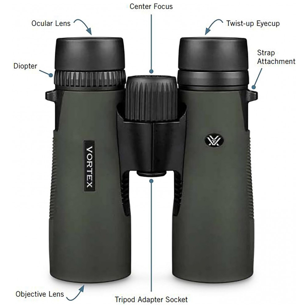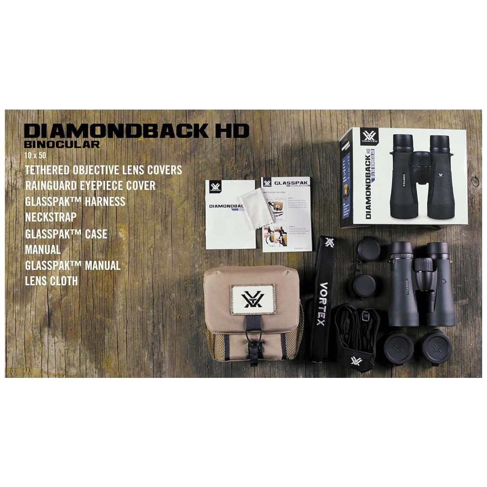 Ampliação de 10x e lentes objetivas de 50mm, esses binos Diamondback HD são otimizados com elementos de vidro selecionados para oferecer resolução excepcional, cortar aberrações cromáticas e fornecer excelente fidelidade de cores, nitidez e transmissão de luz.
