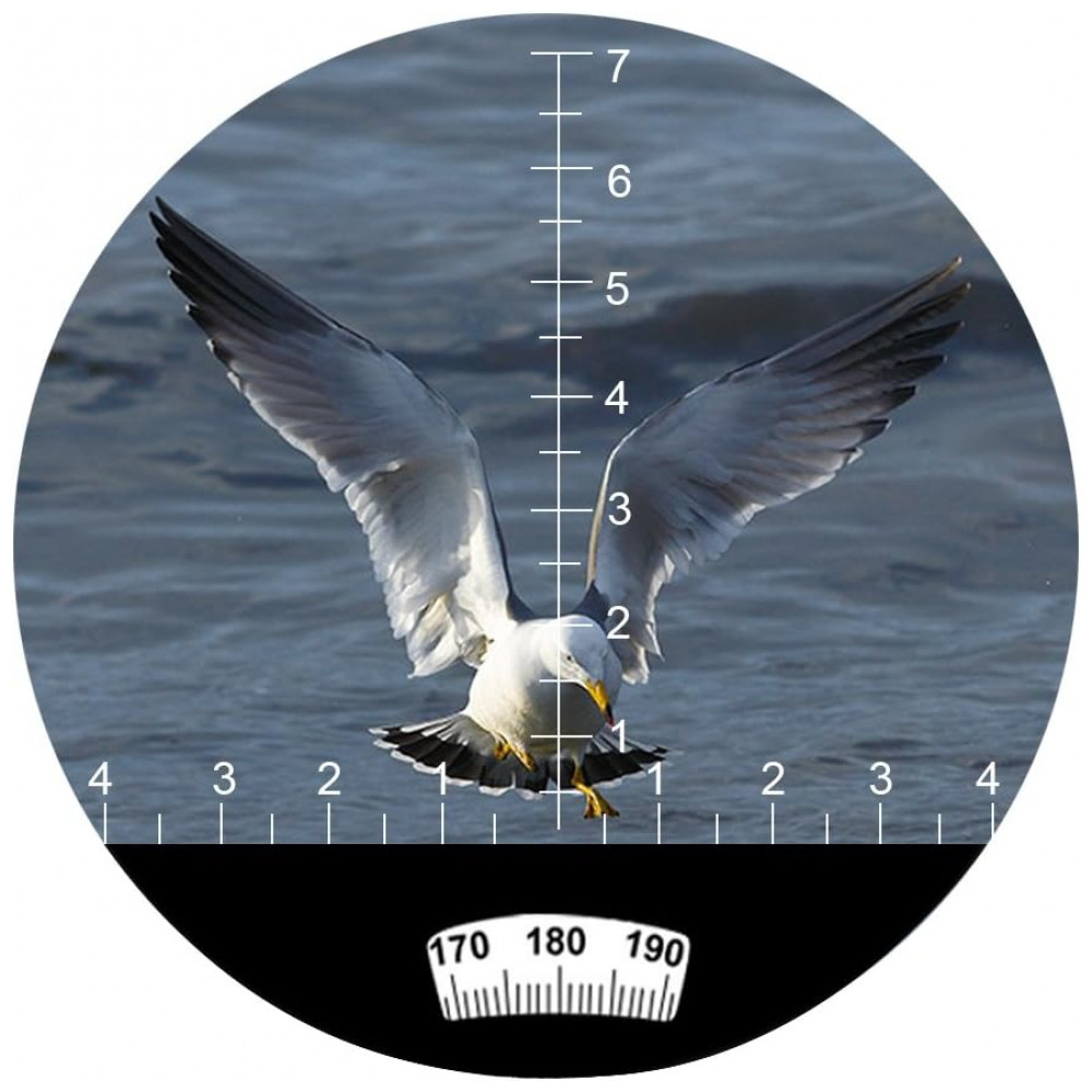 BÚSSOLA E RANGEFINDER Bússola iluminada embutida para localização de direção, com um telêmetro interno para determinar a distância e o tamanho dos objetos.