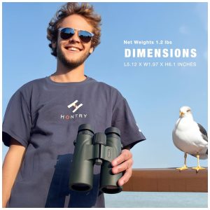 Aderência antiderrapante e durável Estrutura durável com dura de borracha inodoro para que fornece proteção, bem como uma superfície de aderência segura e confortável. Óptica selada com anel de vedação com revestimento à prova de neblina evita que umidade, poeira e detritos entrem nos binóculos. mas também perfeito para atividades ao ar livre, como escalada, caminhadas, viagens, observação da vida selvagem e paisagens