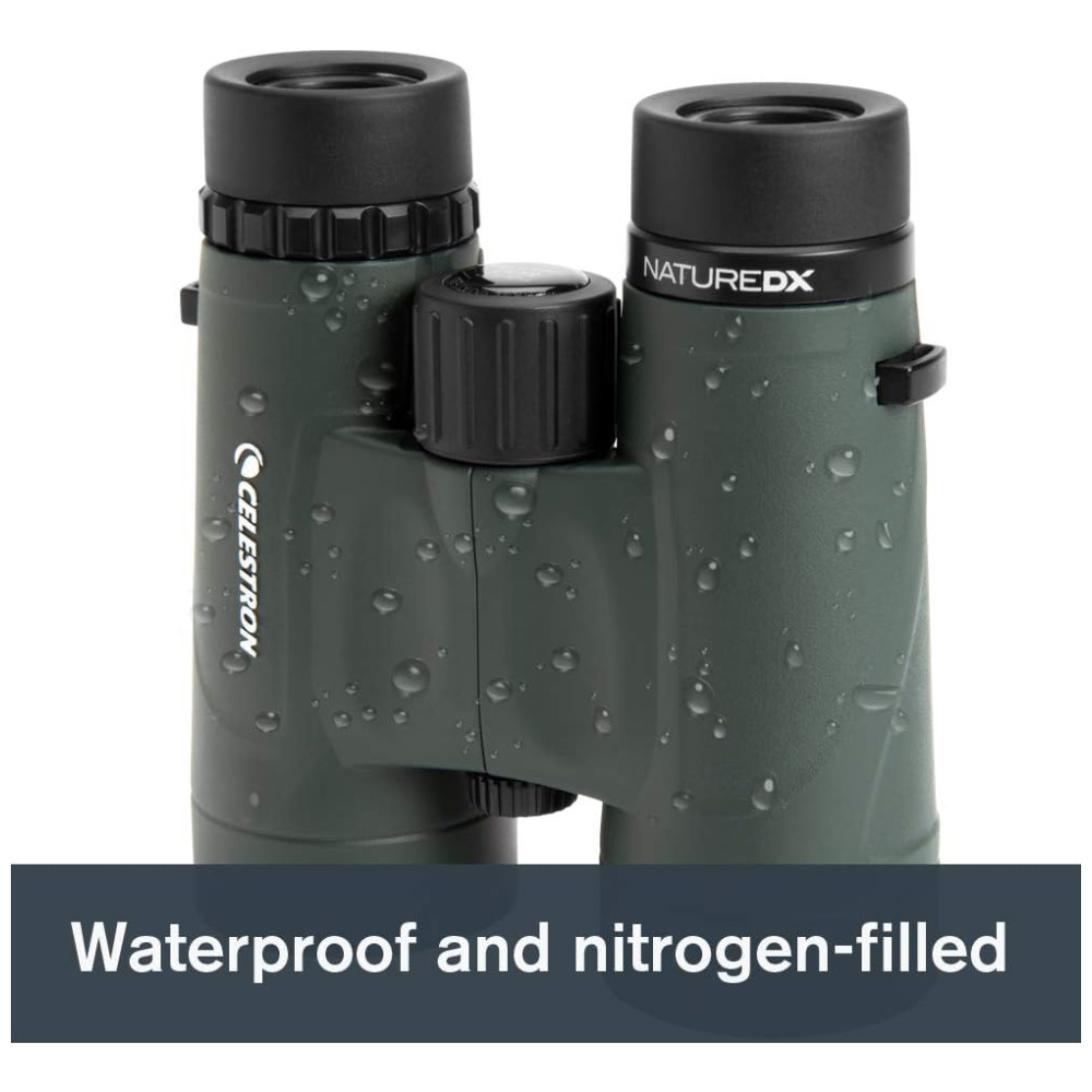 Corpo de tamanho médio robusto e impermeável construção e design incrivelmente precisos que oferecem proteção contra elementos externos. Possui uma carcaça de policarbonato à prova dágua, à prova de neblina, blindada com borracha. Confortáveis oculares giratórios com função multi stop garantem o posicionamento adequado dos olhos para usuários de óculos e não usuários de óculos
