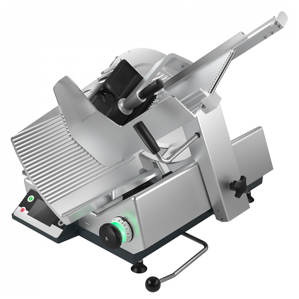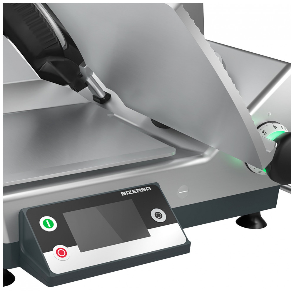 A Bizerba GSP HD I W90 13 é a fatiadora de carnes automática de gravidade mais robusta e sofisticada do mercado, projetada para operações comerciais que exigem performance superior, segurança e precisão. Equipado com uma lâmina de liga dura de 13 cm revestida em cromo de alta dureza 6062 Rockwell, esta lâmina é a maior, mais fina e resistente do setor, girando a impressionantes 319 rotações por minuto graças ao potente motor de 1/2 CV. Com um ajuste preciso da espessura da fatia, que varia de 0 a 15,16 mm, você pode fatiar carnes frescas, queijos, frutas e legumes de forma rápida e uniforme, assegurando a qualidade e apresentação impecável dos seus pratos assinados.