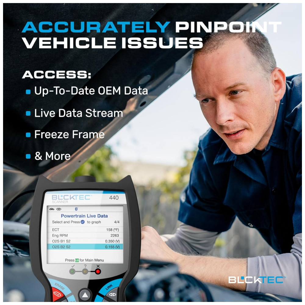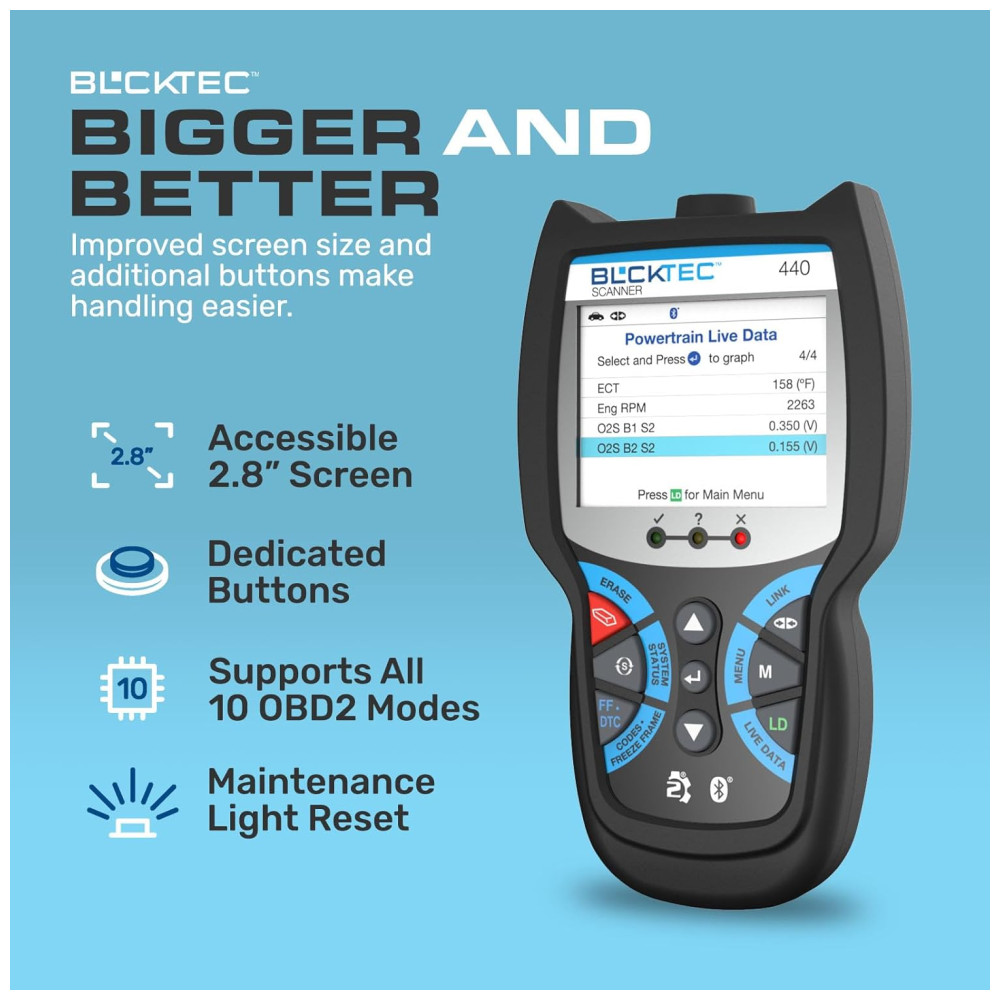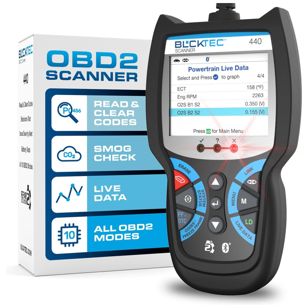 Scanner Bluetooth OBD2 BLCKTEC 440 com Tela Colorida 28″ e Diagnóstico ao Vivo para Carros 1996+ e Diesel 12V