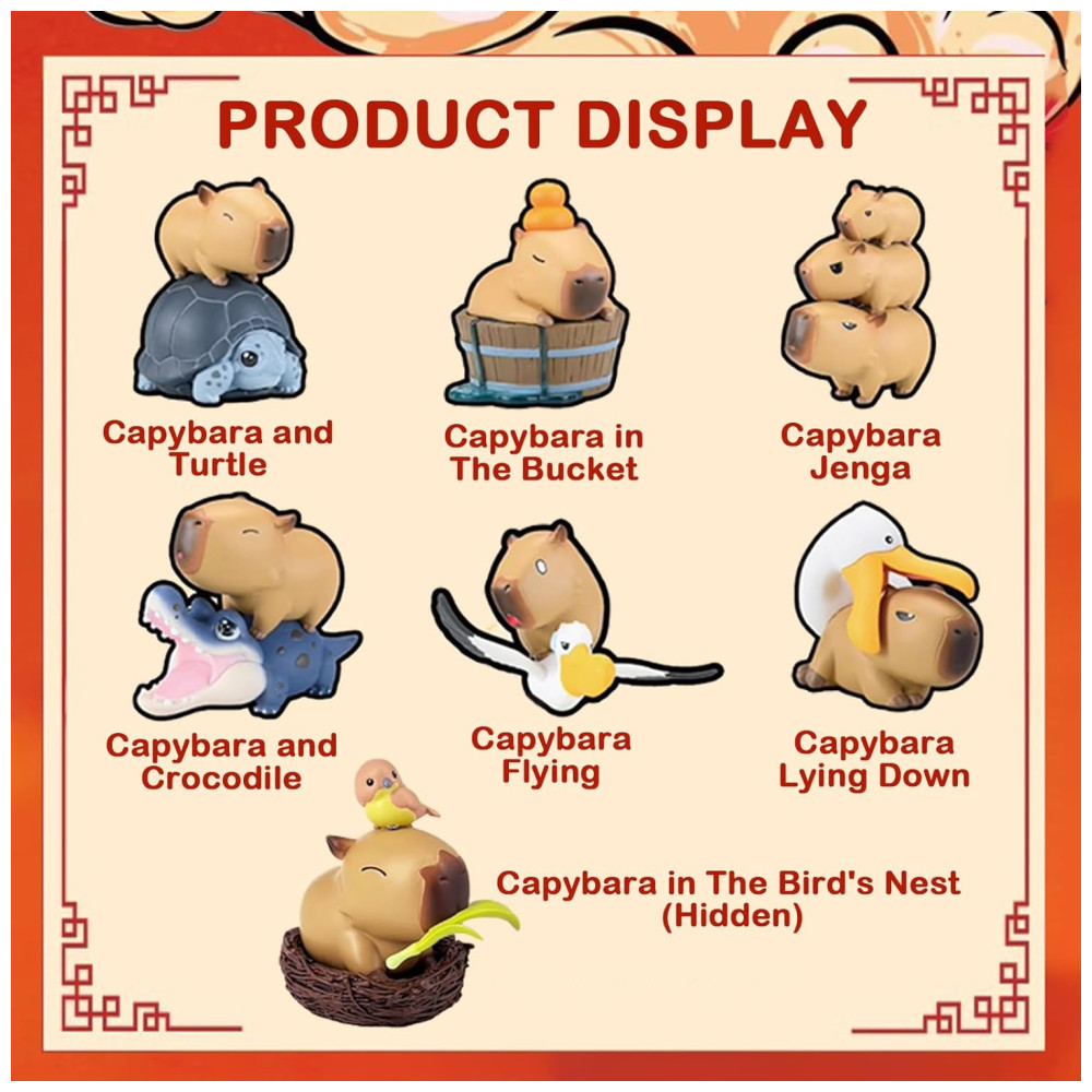 ATENÇÃO: Este não é um brinquedo para crianças! São figuras colecionáveis. Esta série conta com 6 figuras regulares e 1 edição escondida de Capybara no Ninho dos Pássaros para colecionar. Cada caixa é disposta aleatoriamente, podendo conter a edição especial com probabilidade de 1 em 172. Cada figura kawaii tem uma altura entre 5,6 e 8,1 centímetros, sendo pintadas à mão com muitos detalhes. Um presente perfeito para maiores de 15 anos, ideal para decorar casa, carros e escritórios. Feito de PVC não tóxico, inodoro e inofensivo, com cores vivas e superfície de alta qualidade.