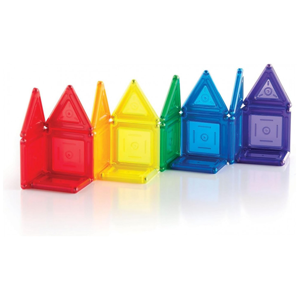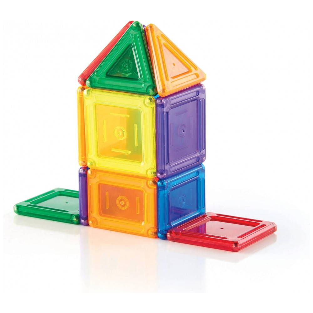 O kit inclui 24 formas geométricas magnéticas em diferentes formatos, dimensionadas para mãos pequenas e com bordas lisas, formando um conjunto introdutório para construções em mesa ou tapete. O guia de criatividade que acompanha o produto apresenta ideias de modelos e desafios para apoiar o uso em casa ou em contexto escolar, trabalhando reconhecimento de formas, raciocínio espacial, noções de massa e volume e coordenação motora fina em atividades de inspiração STEM.