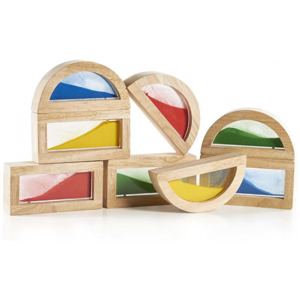 Blocos de Construção Sensoriais Guidecraft Rainbow Blocks Areia Multicolorido Formas Retangulares e Meia-Lua Madeira Acrílico G3014