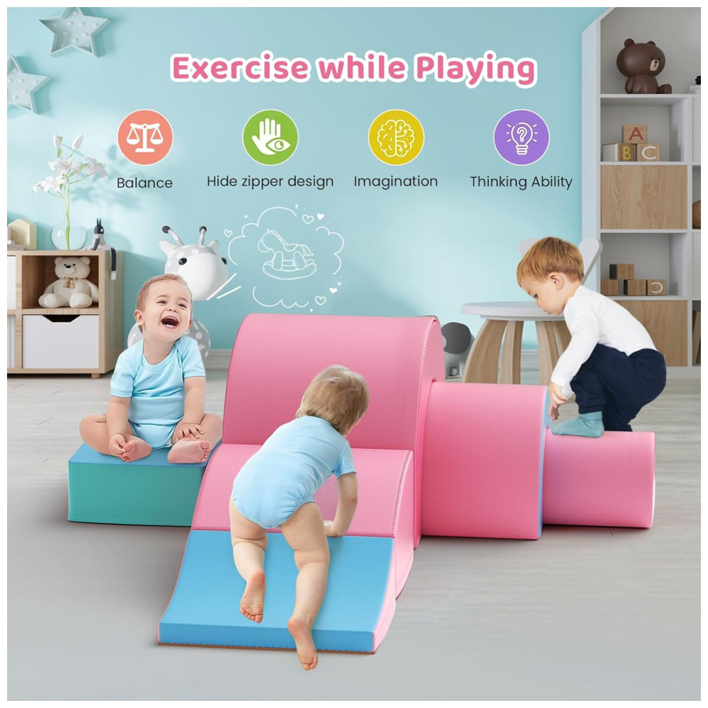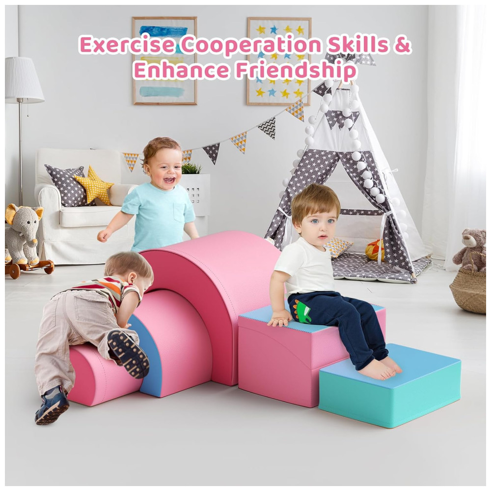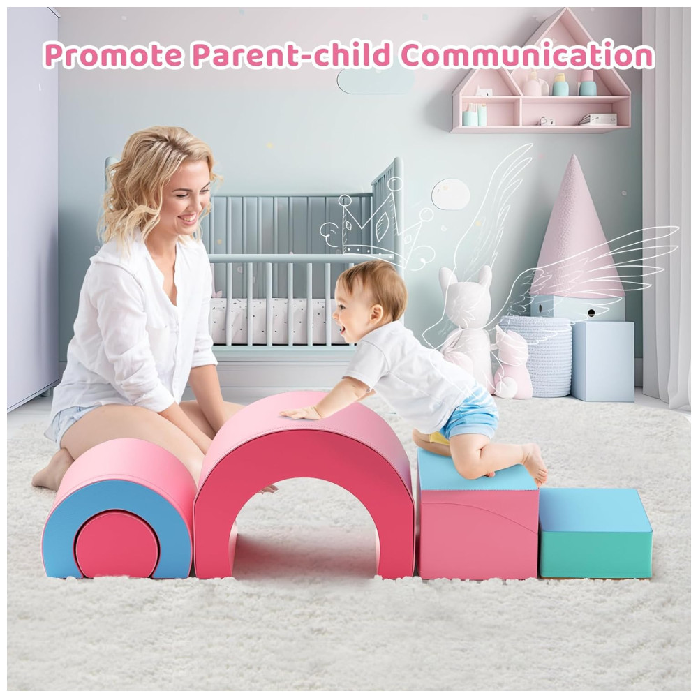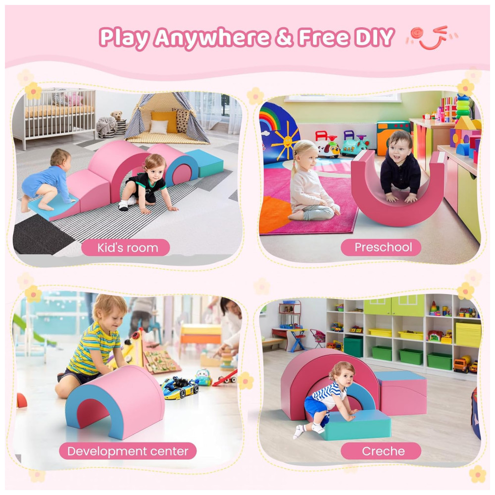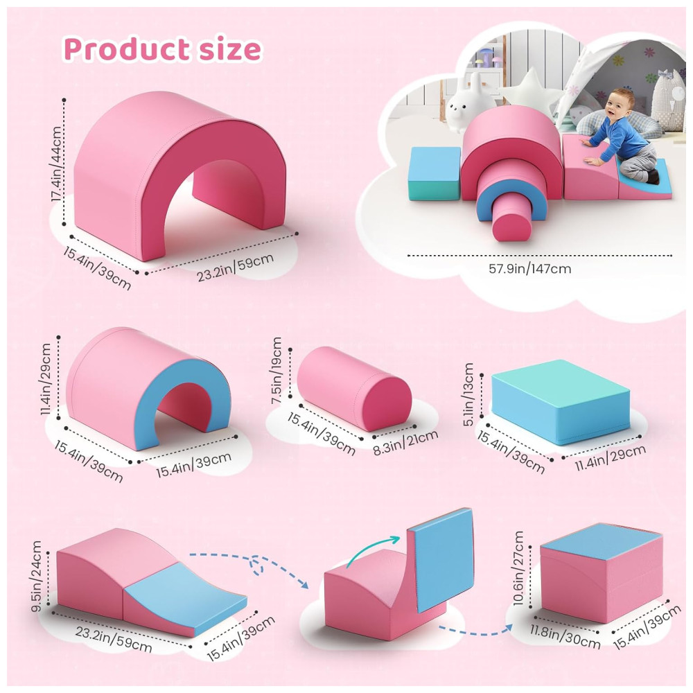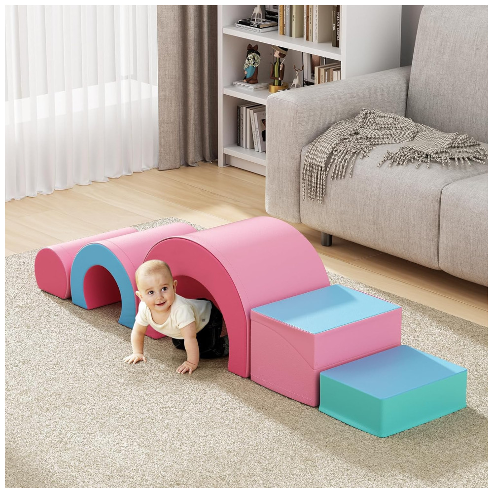 Blocos de Espuma Lischwert Brinquedos de Escalada para Bebês 5 Peças com Bloco Dobrável e Túnel Conjunto de Atividades Internas Para Crianças.