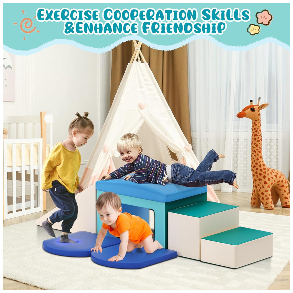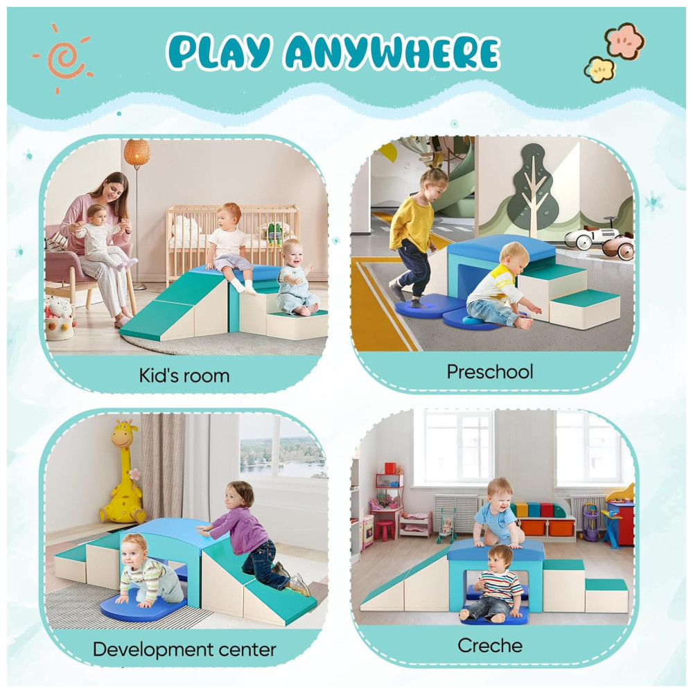 Conjunto de Brinquedos de Escalada Macios: O conjunto de atividades Lischwert inclui 6 blocos de espuma para escalar, sendo 2 degraus, 1 túnel, 1 rampa e 2 almofadas. Podem ser rearranjados e montados de diferentes formas, proporcionando diversão sem fim.