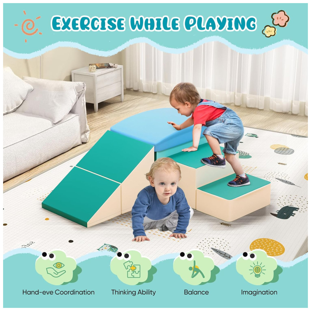 Blocos de Espuma Lischwert com Slide Escada e Rampas Brinquedos de Escalada para Bebês 6 Peças Para uso Interno.