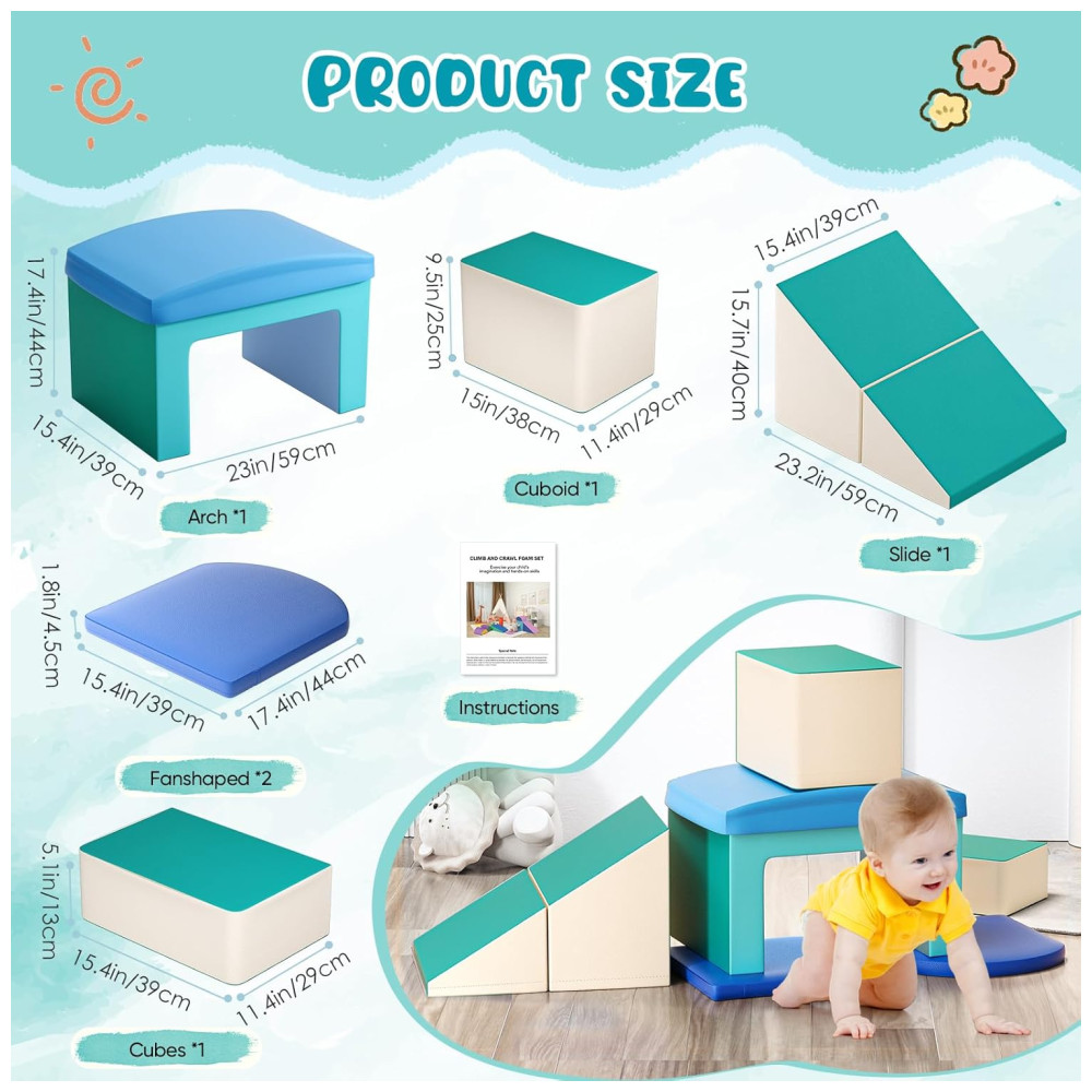 Escalada Segura para Bebês: Nossos brinquedos de escalada em espuma são feitos de algodão perlado, macio, durável e difícil de deformar. O núcleo dos blocos é coberto com couro vegano e possui uma base antiderrapante que mantém a estrutura no lugar durante o uso.