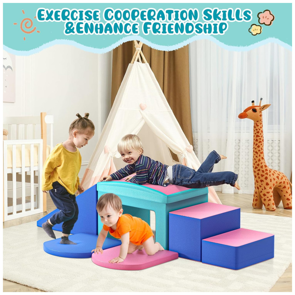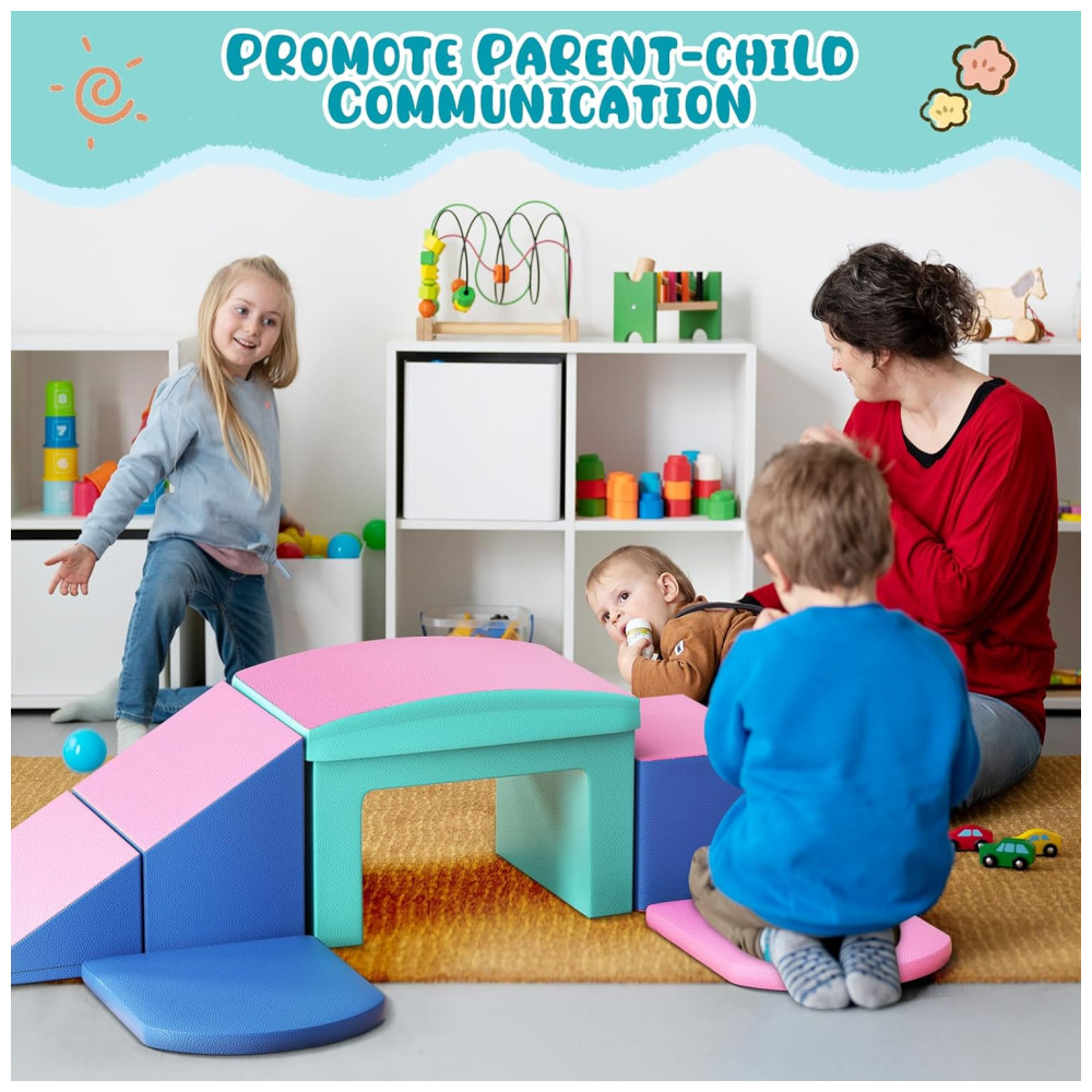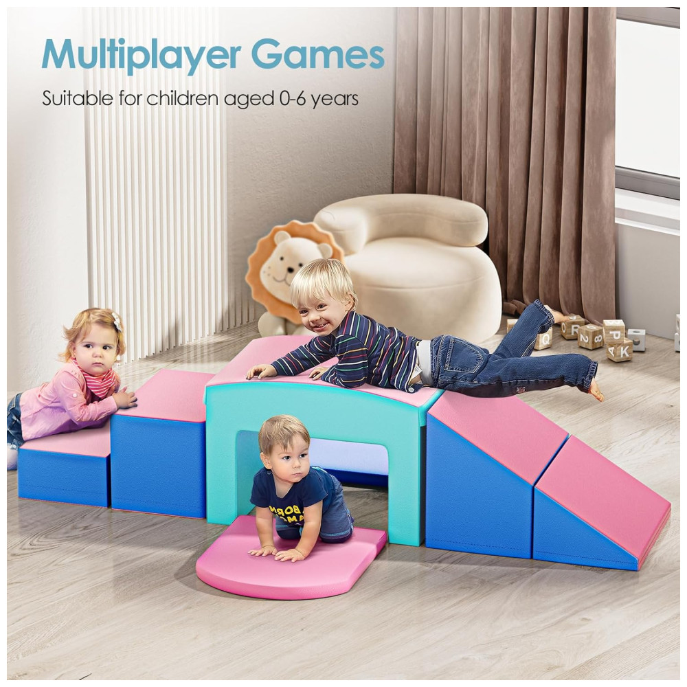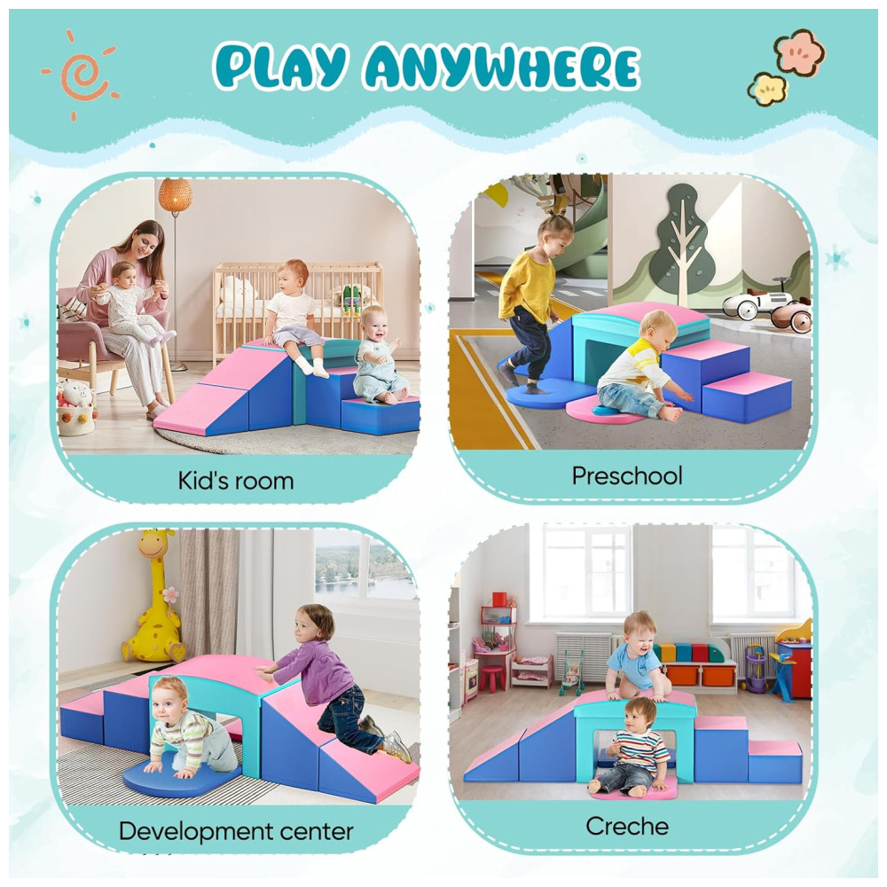 Blocos de Espuma Lischwert para Bebês Brinquedos de Escalada Internos com Escada e Rampas Soft Play para Bebês 6 Peças.