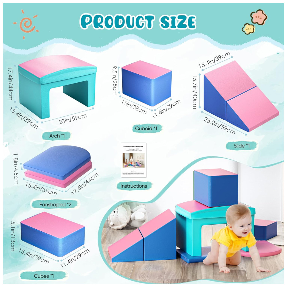 “Ideal para Ambientes Internos e Externos” – Este brinquedo de escalada para bebês é de alta qualidade e versátil. Cada peça é leve, permitindo que o bebê mova facilmente, e devido ao material à prova d’água e fácil de limpar, também pode ser usado ao ar livre, perfeito para centros de educação infantil, casas e escolas.