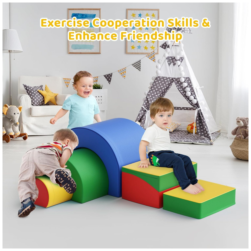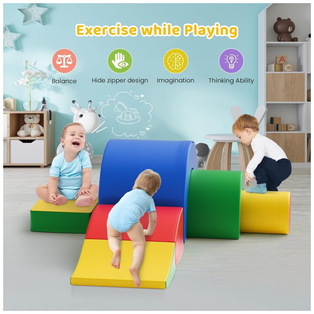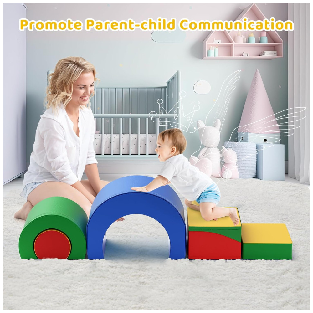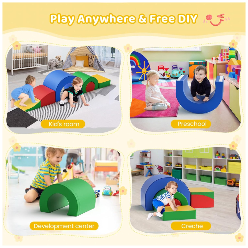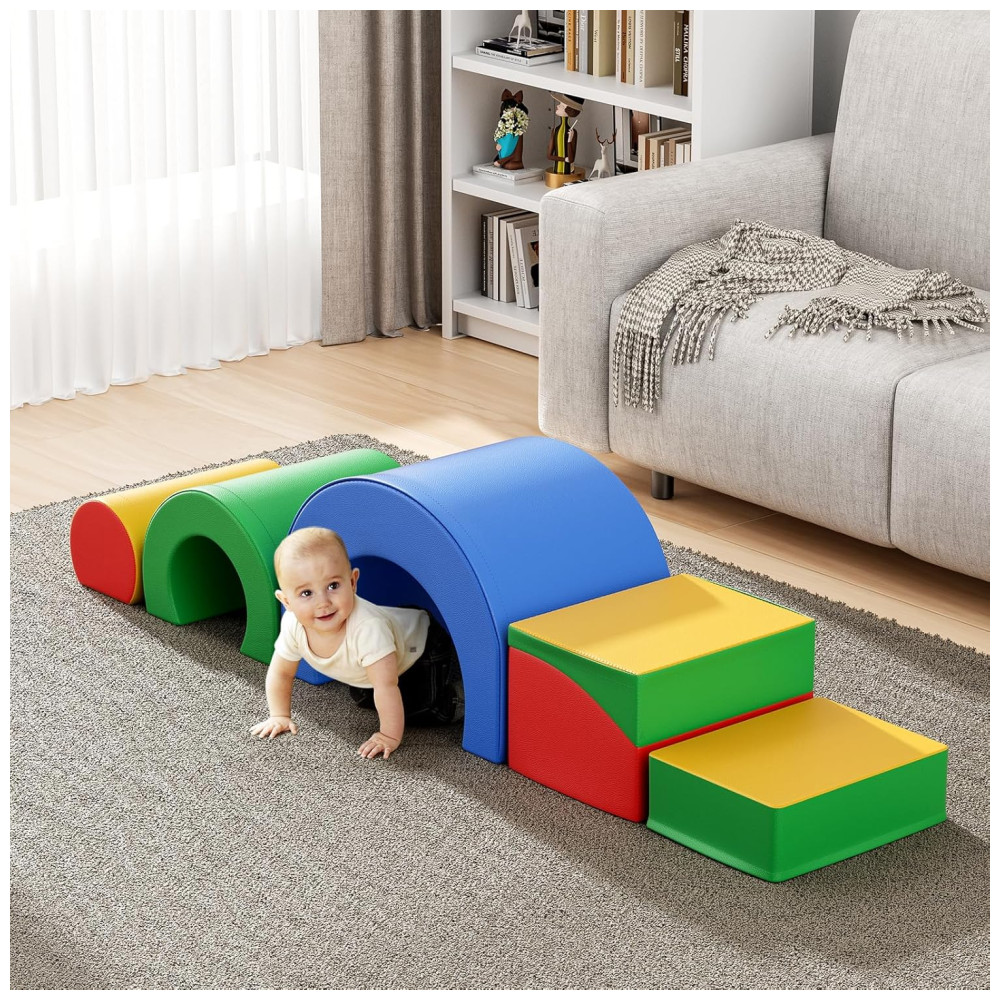 Blocos de Espuma Lischwert para Bebês Conjunto de 5 Peças com Bloco Dobrável e Túnel Brinquedos de Escalada Coloridos para Crianças.