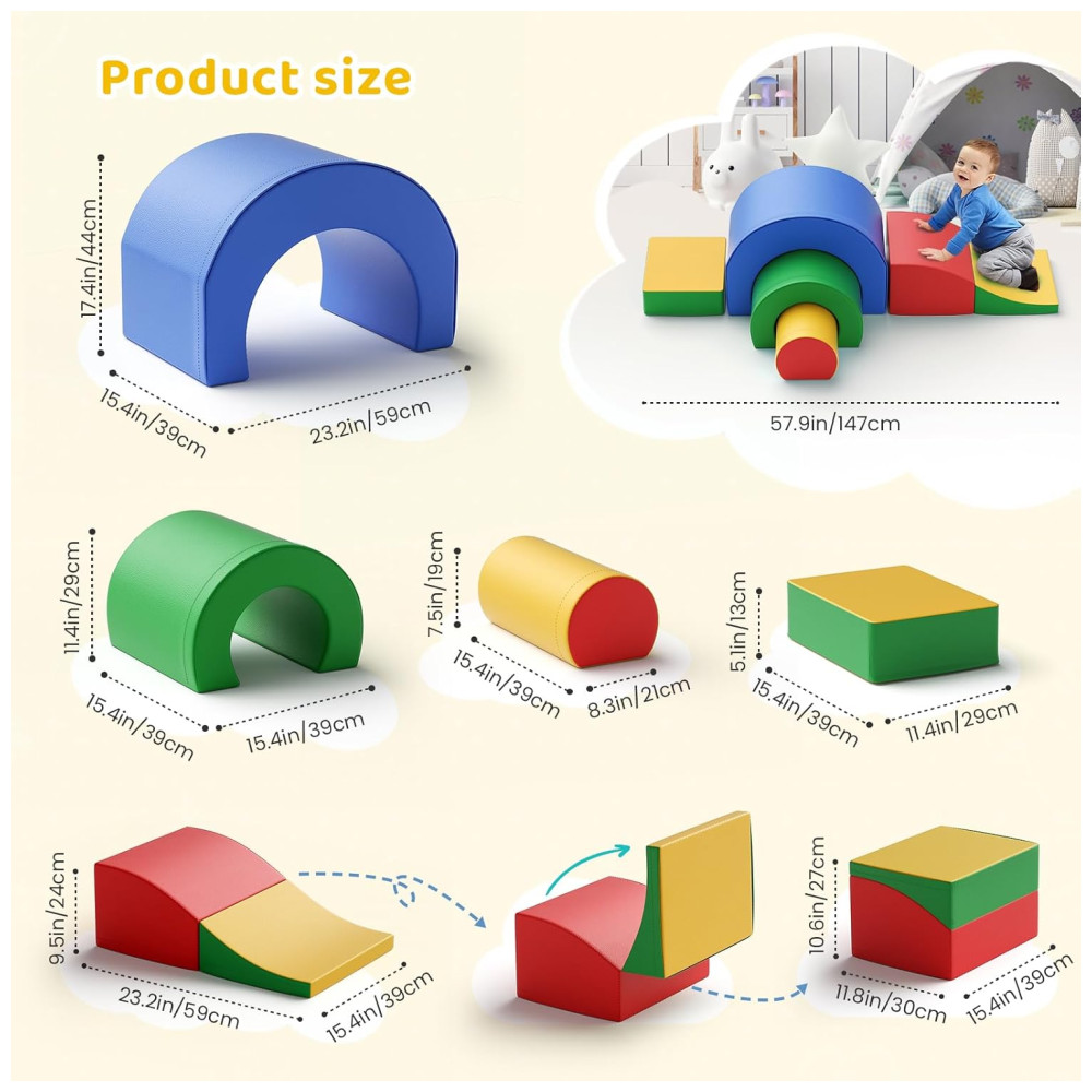Escorregador Dobrável & Diversão Garantida: O design único dos blocos de escorregador dobráveis vai garantir mais diversão para as crianças! Este brinquedo de escalada para bebês foi desenvolvido para aprimorar as habilidades cognitivas dos pequenos enquanto brincam. As crianças podem subir, rastejar e rolar nos blocos para desenvolver habilidades motoras e de aventura. As cores brilhantes estimulam o interesse das crianças em brincar.