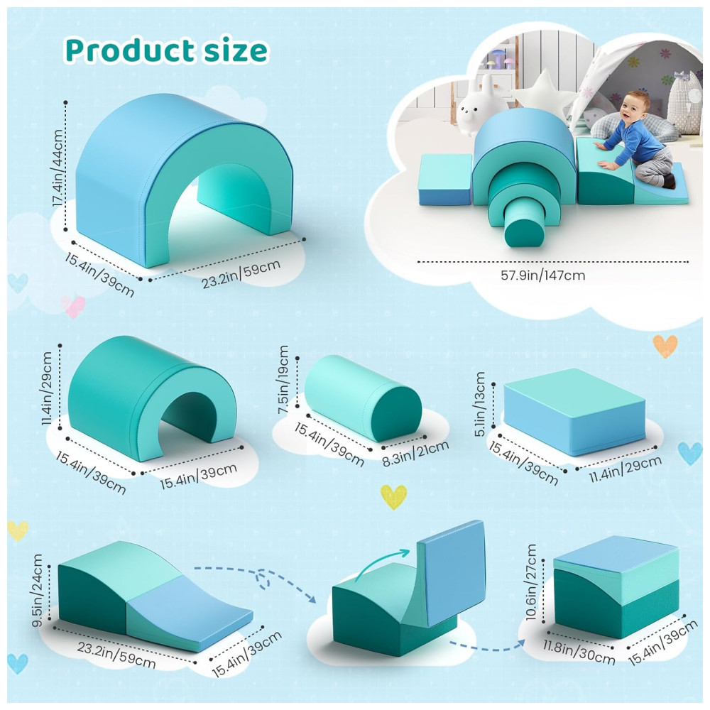 Os Blocos de Escalada de Espuma em formato de Caracol são ideais para estimular o desenvolvimento das habilidades motoras e cognitivas das crianças enquanto se divertem. Composto por 5 peças em diferentes formatos, incluindo cubo, cilindro, blocos arqueados e bloco em cunha dobrável, este conjunto proporciona à criança a liberdade de criar seu próprio percurso de rastejo. Feitos de espuma de alta densidade e revestidos com couro PU espesso e resistente, garantem segurança e conforto. Fáceis de montar, desmontar e limpar, os blocos estimulam a criatividade, solução de problemas e diversão sem fim.