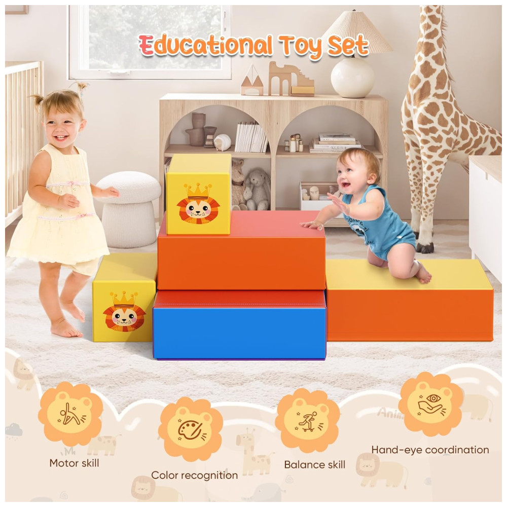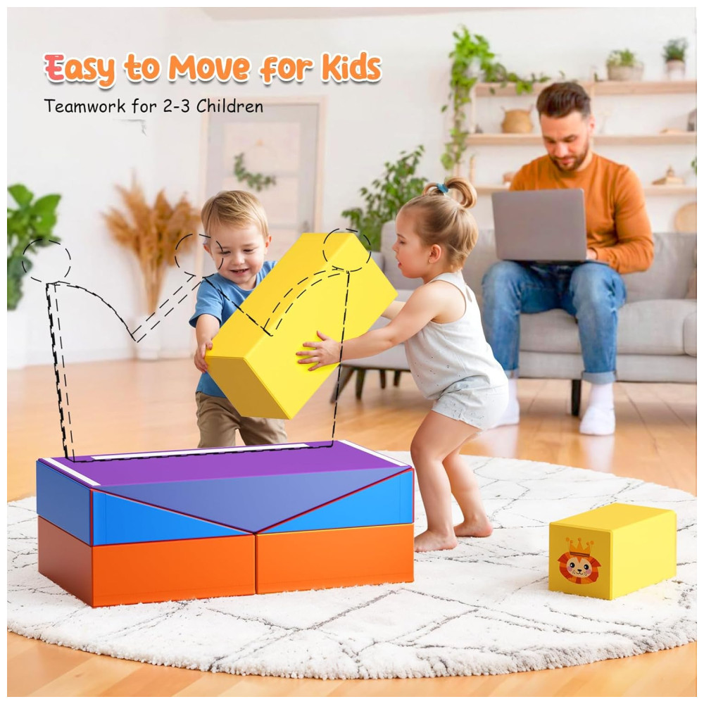 “Desenvolvimento Motor e de Escalada” – Os blocos de escalada em espuma são fáceis de montar. Ao escalar e descer os blocos, os bebês aprimoram suas habilidades motoras grosseiras, como equilíbrio, coordenação, força e o desenvolvimento físico geral.