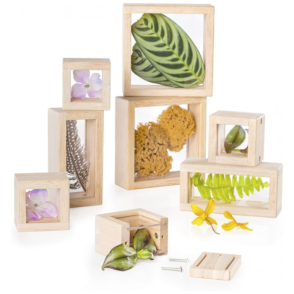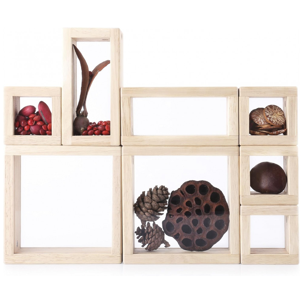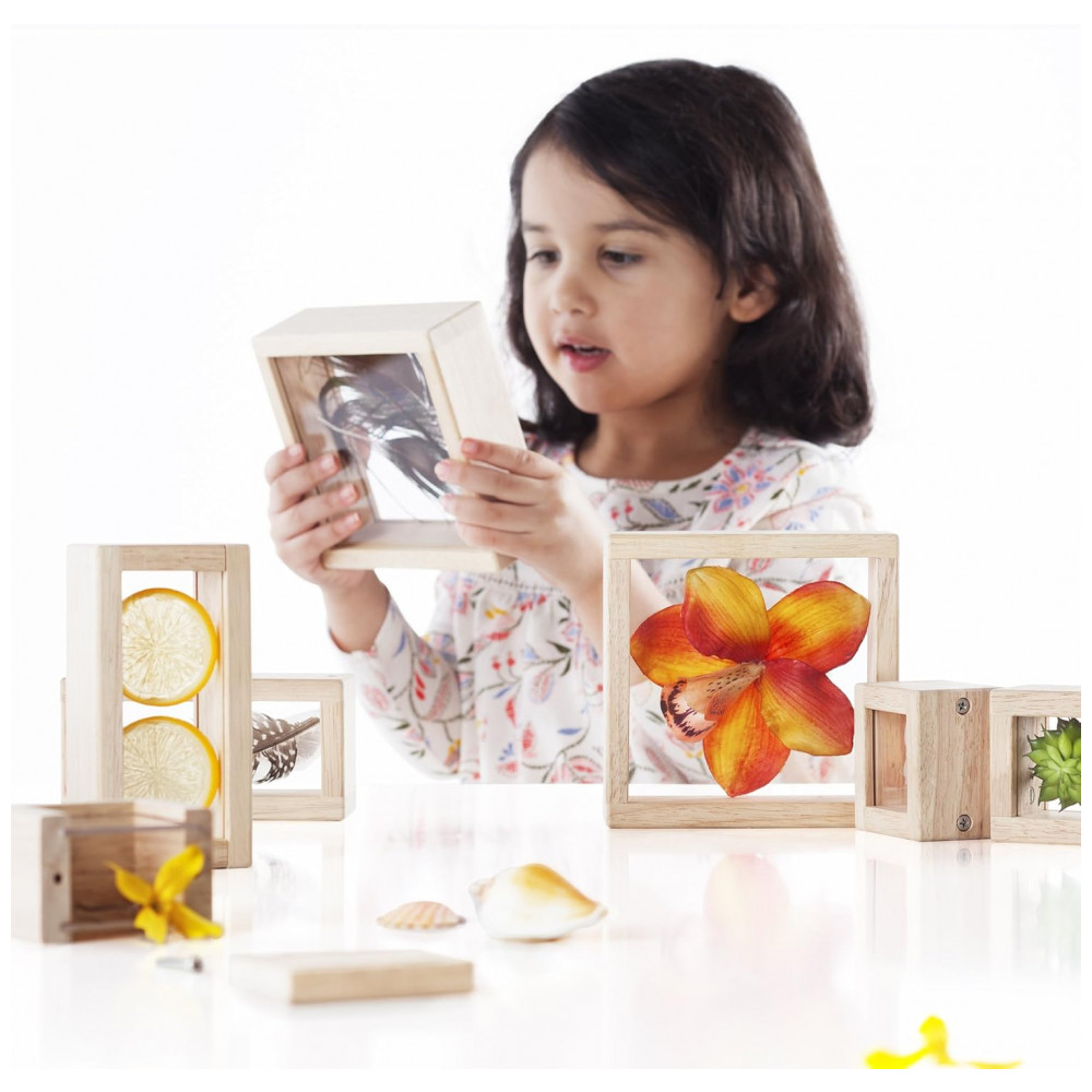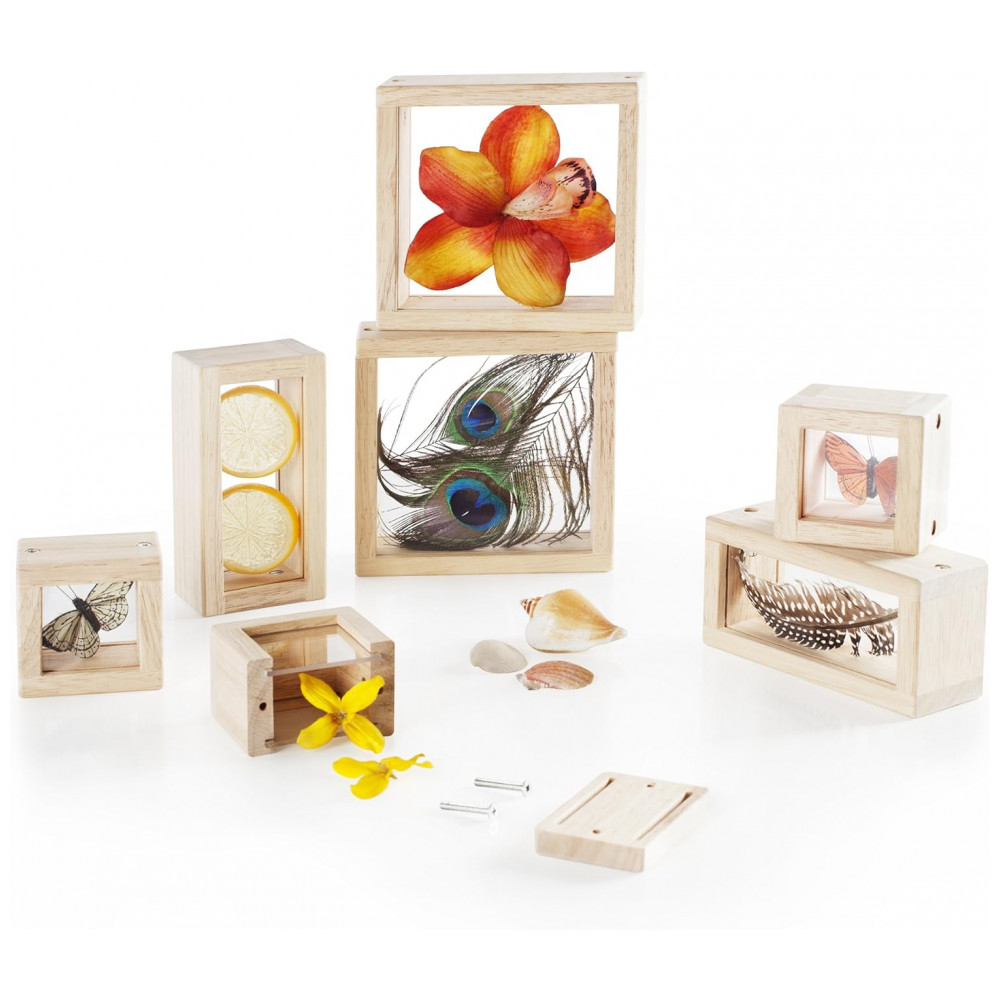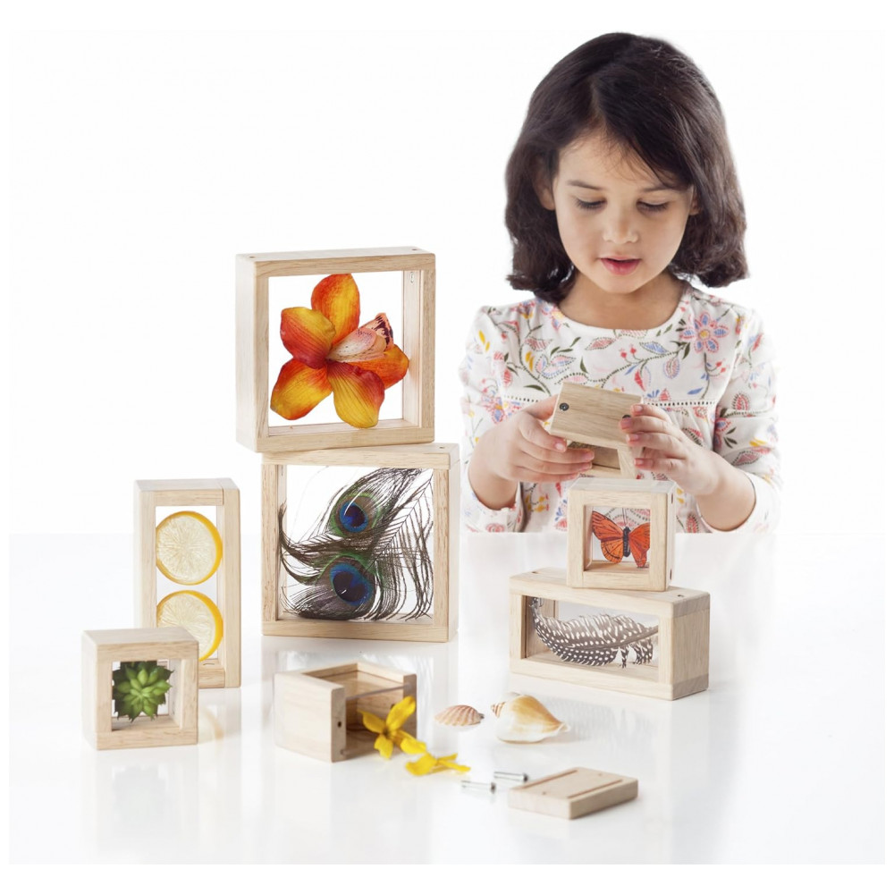 Blocos de Observação Guidecraft Treasure Blocks Transparente Janelas Acrílicas Removíveis Madeira 8 Peças XGC-G3084