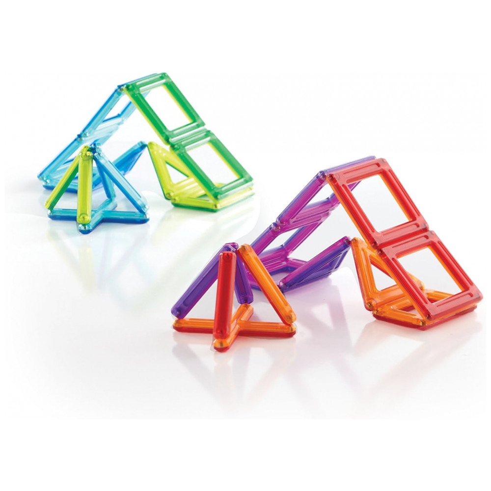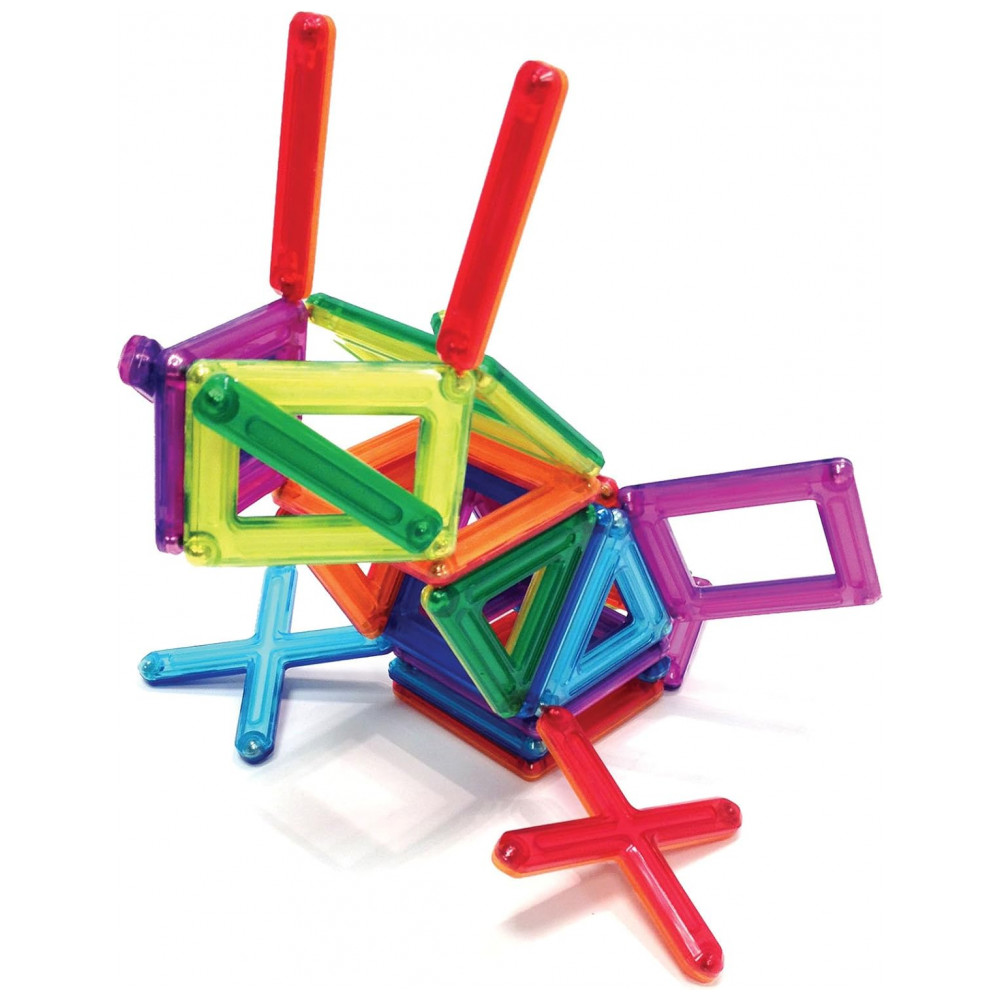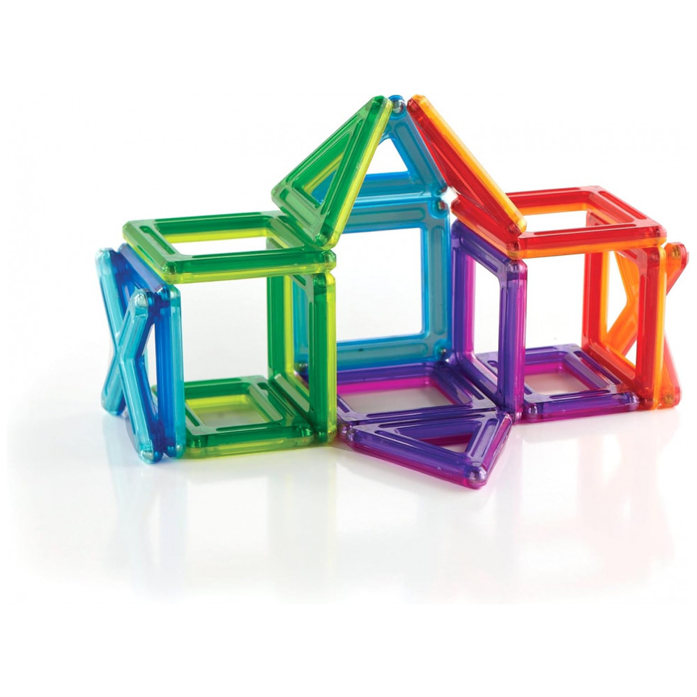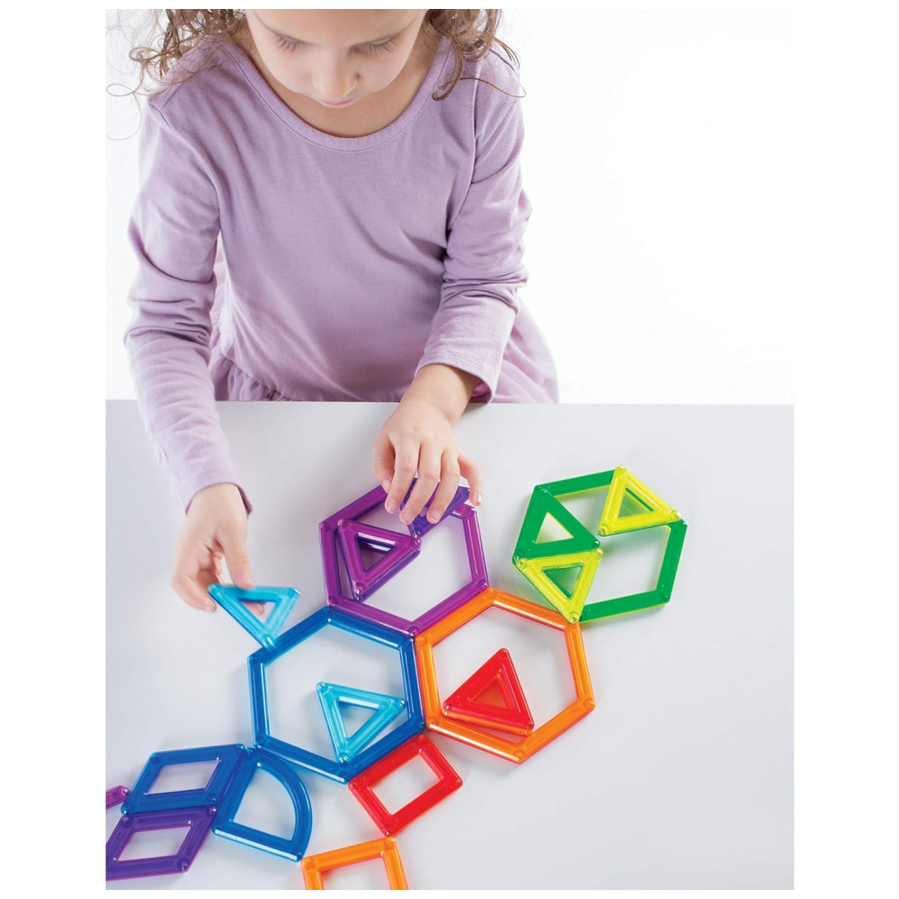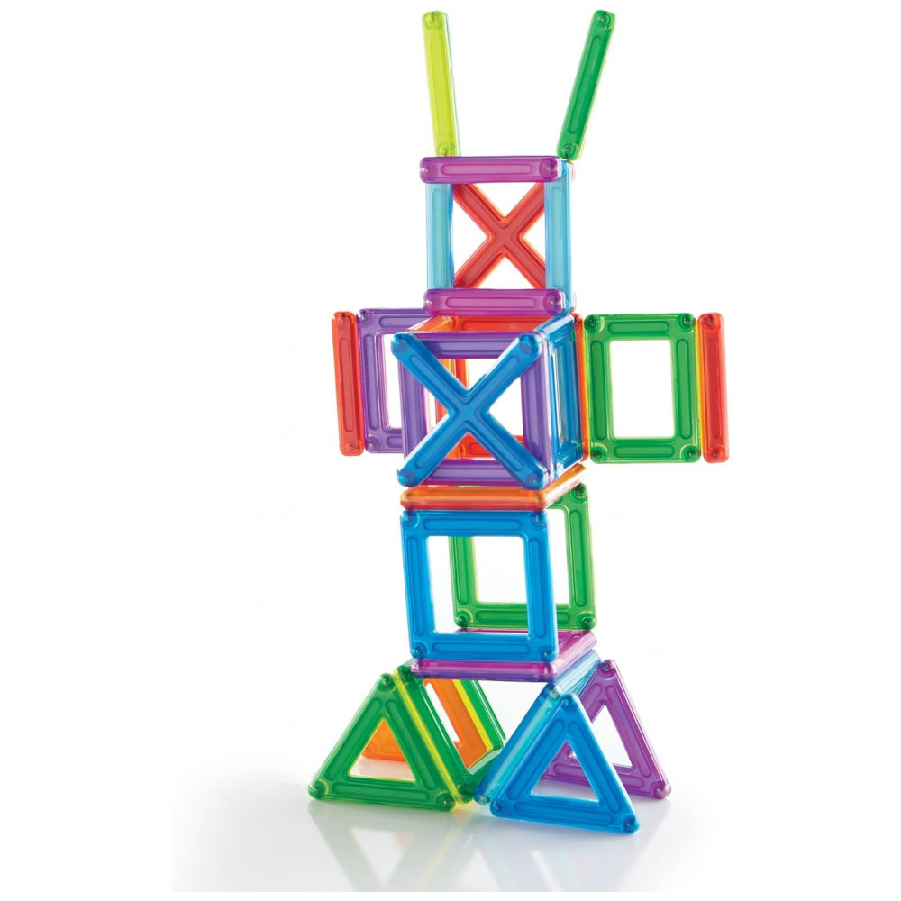 O conjunto Guidecraft PowerClix Frame com 26 peças é um kit de blocos magnéticos voltado para construções abertas em 2D e 3D, estimulando criatividade, raciocínio espacial e coordenação motora fina em crianças a partir de 4 anos. As peças em plástico ABS translúcido multicolorido utilizam ímãs de neodímio internos com sistema de clique e conexão, facilitando o encaixe entre formas geométricas sem repulsão magnética.
