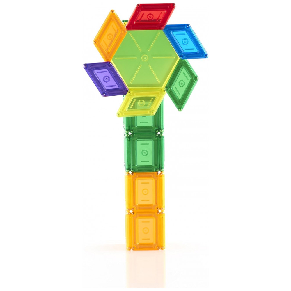 O conjunto Guidecraft PowerClix Solids é um kit de blocos magnéticos desenvolvido para construções abertas em duas e três dimensões, com foco em habilidades de pensamento espacial, criatividade e exploração de conceitos geométricos em crianças a partir de 3 anos. As 70 peças em plástico ABS translúcido, em cores variadas, possuem ímãs de neodímio internos com sistema de clique e conexão que facilita o encaixe e evita repulsão entre as peças.