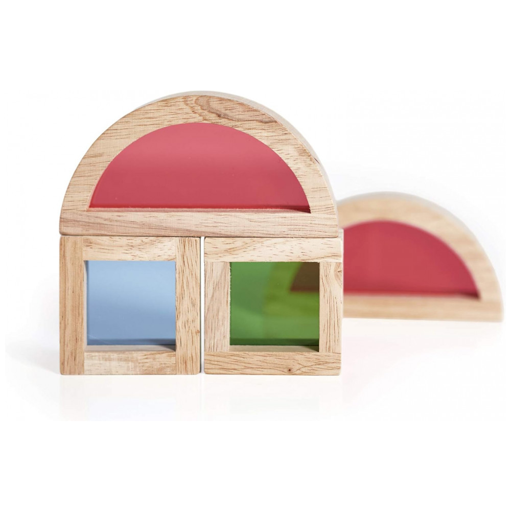 Blocos sensoriais Jr. Rainbow Blocks Guidecraft em madeira com janelas acrílicas coloridas – 20 peças empilháveis