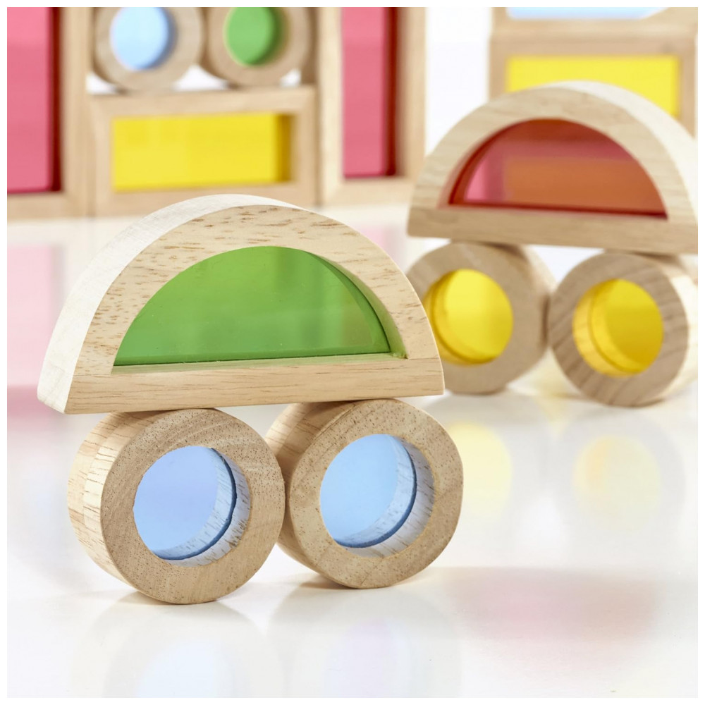 Blocos sensoriais Jr. Rainbow Blocks Guidecraft em madeira com janelas acrílicas coloridas – 40 peças empilháveis