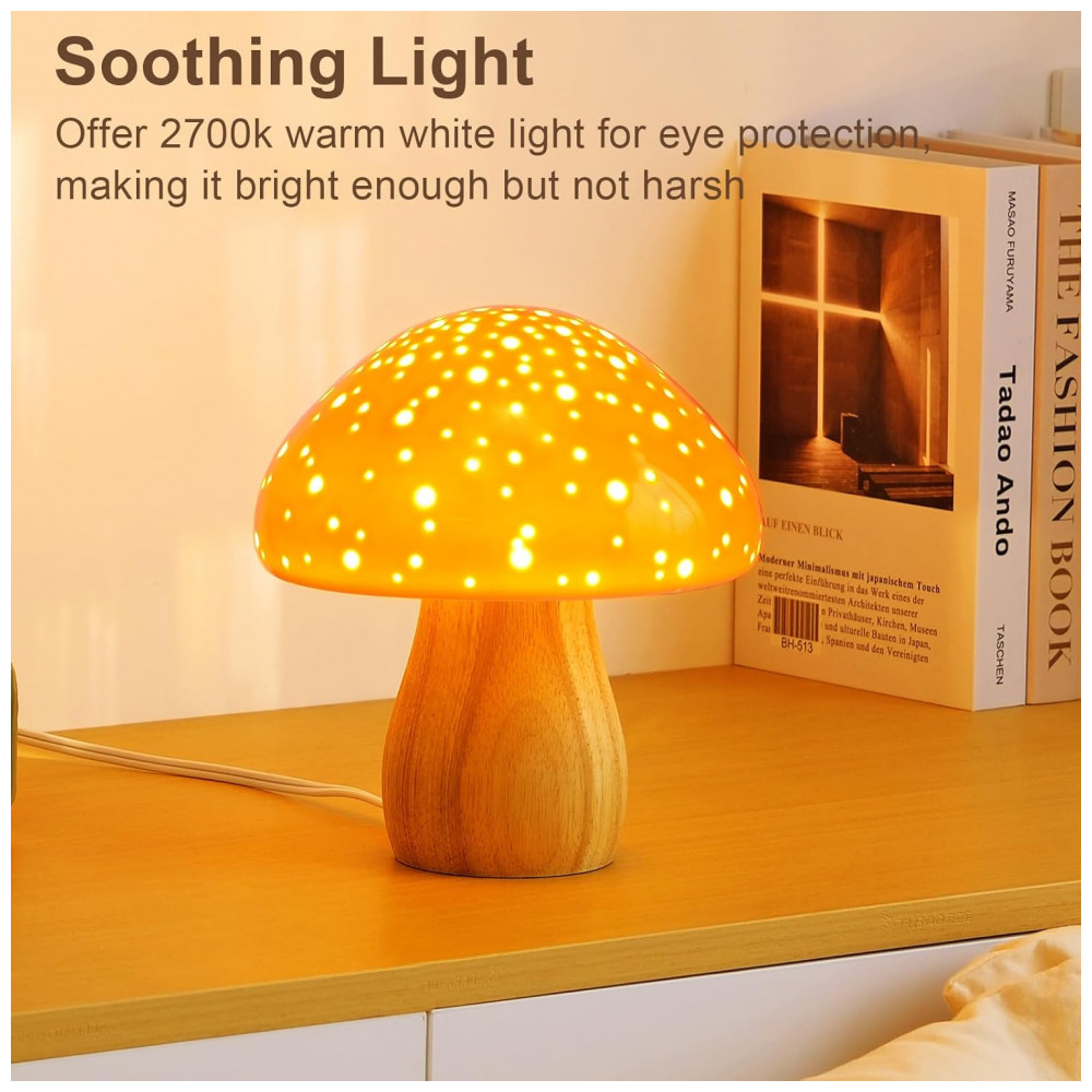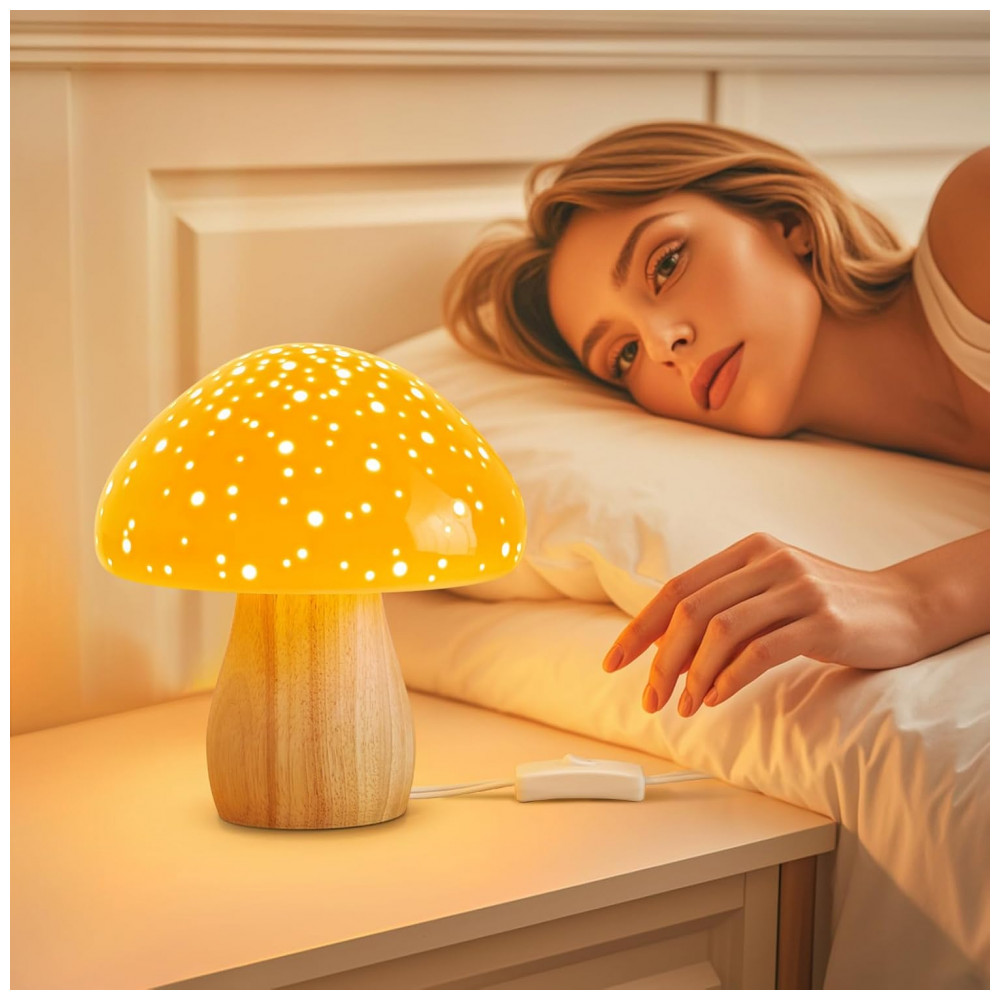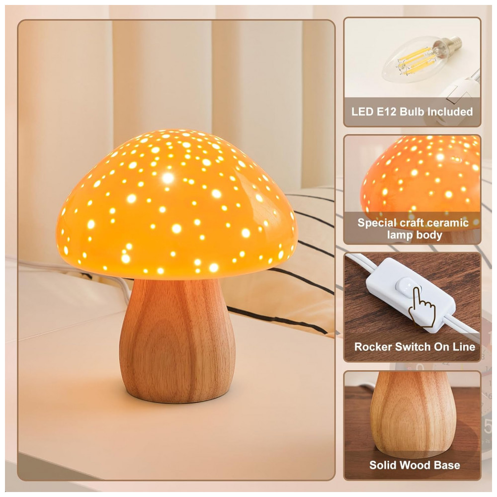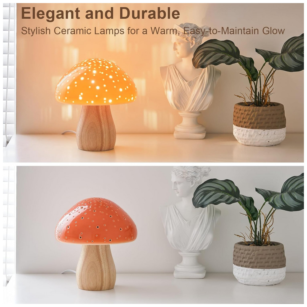 Característica Especial: Design Estético, Luminária Cogumelo de Cerâmica, Com Fio, Corpo de Cerâmica Premium, Lâmpada LED Inclusa,
