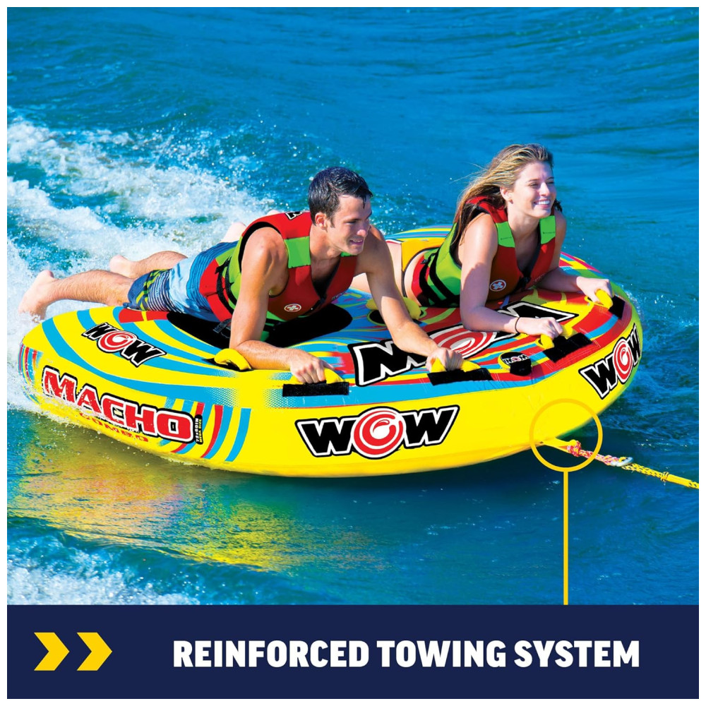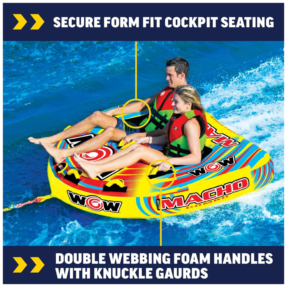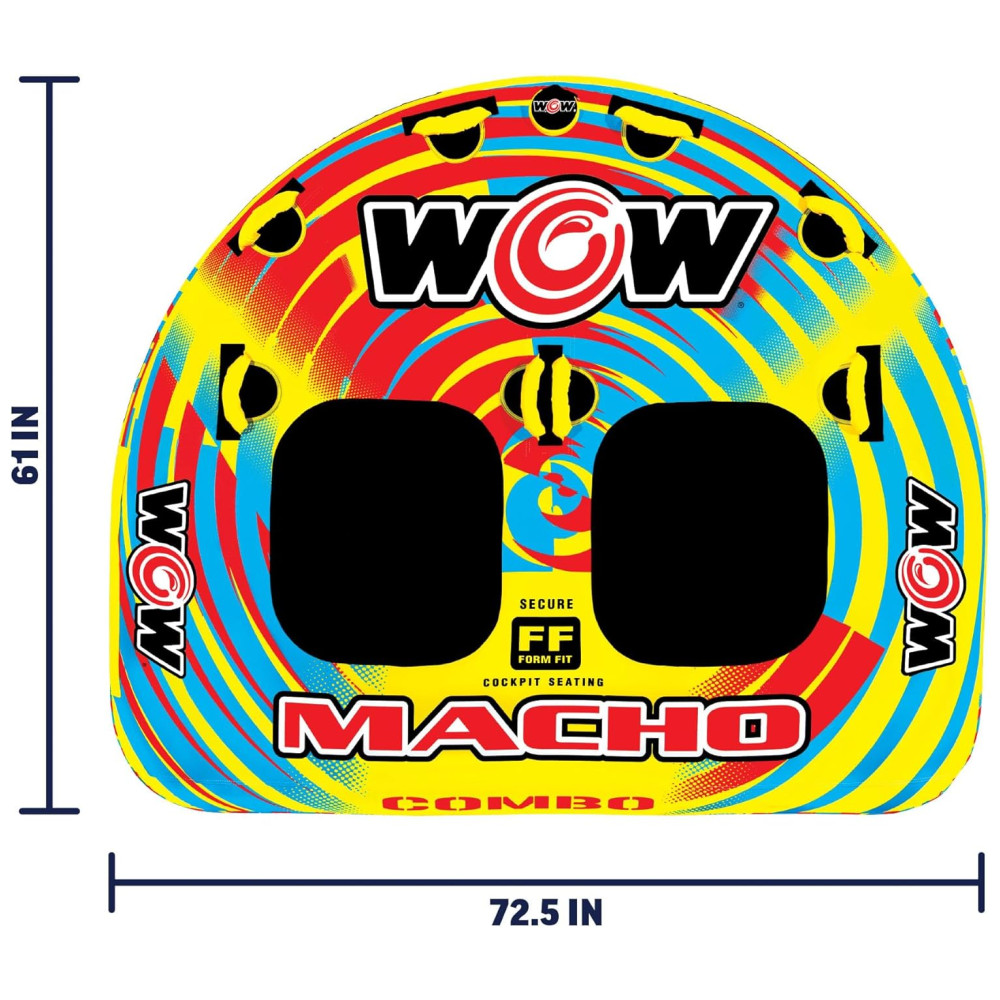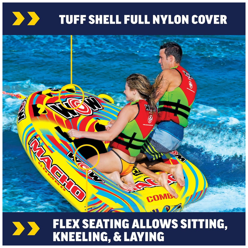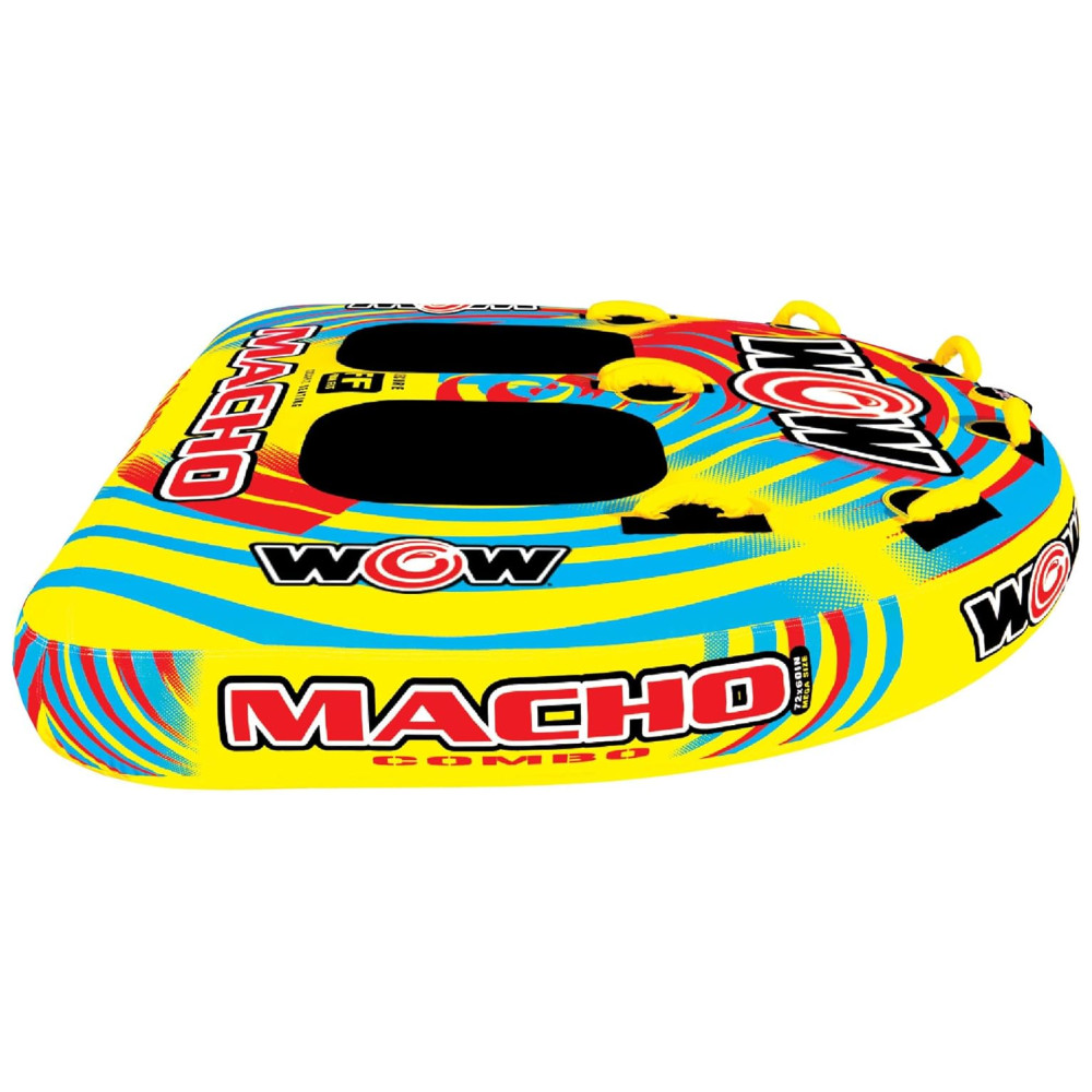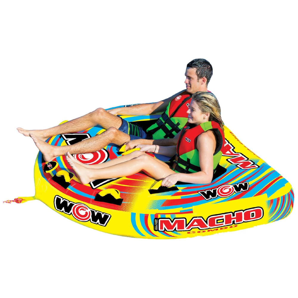O Macho Combo da WOW é um tipo de tubo de deck. O Macho Combo Series é o rebocável perfeito para a família com crianças que querem sentar dentro de um cockpit para um passeio mais e para os mais aventureiros que querem se ajoelhar ou deitar no convés e apenas segurar por querida vida. Escolha como você monta no Macho Combo do WOW World of Watersports