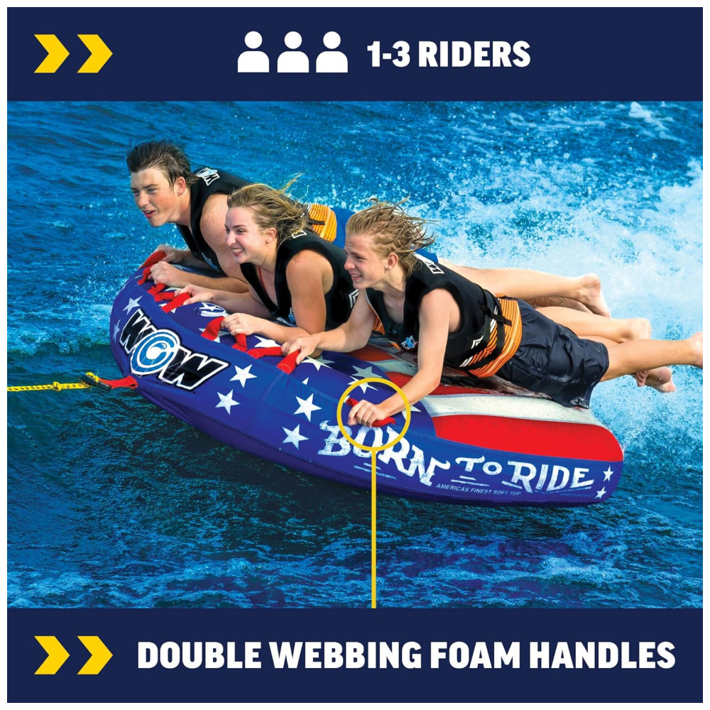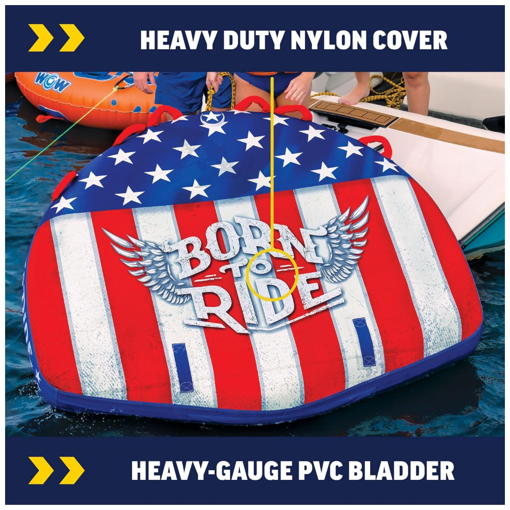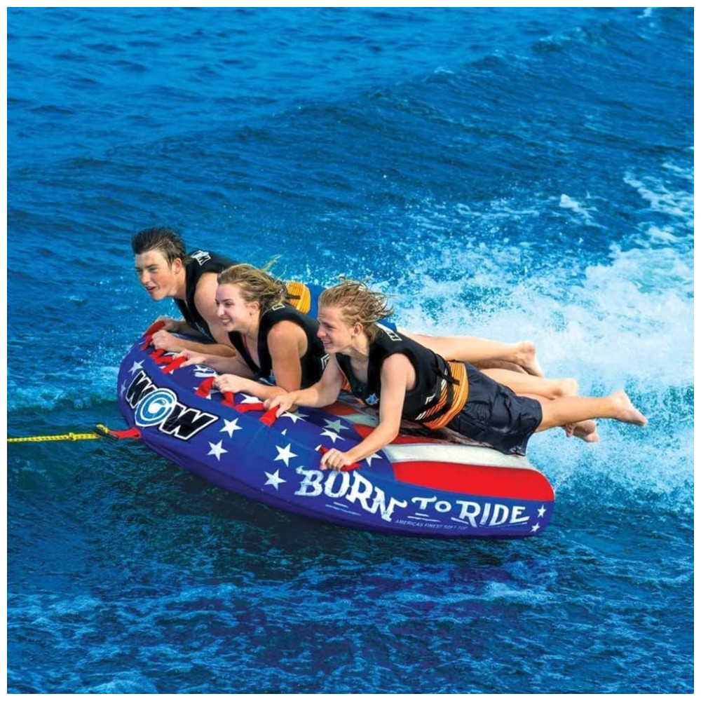 Boia Rebocável para 1 a 3 Pessoas Durável e Resistente para Passeios de Barco WOW Sports Born to Ride Azul