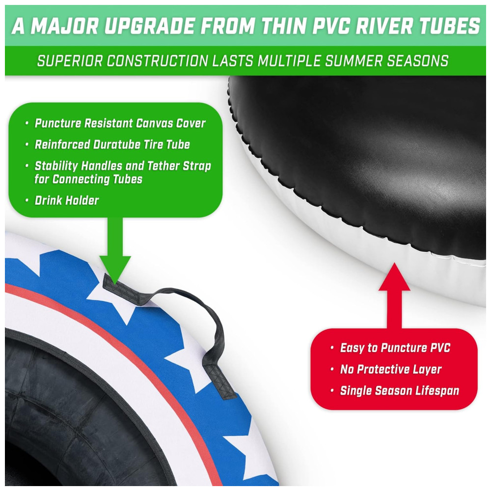 Este tubo robusto apresenta um design de construção pesada, incorporando um pneu reforçado fechado envolto por uma capa de lona premium. Equipado com um fundo de malha, proporciona uma flutuação tranquila em lagos e rios ao longo de toda a temporada de verão.