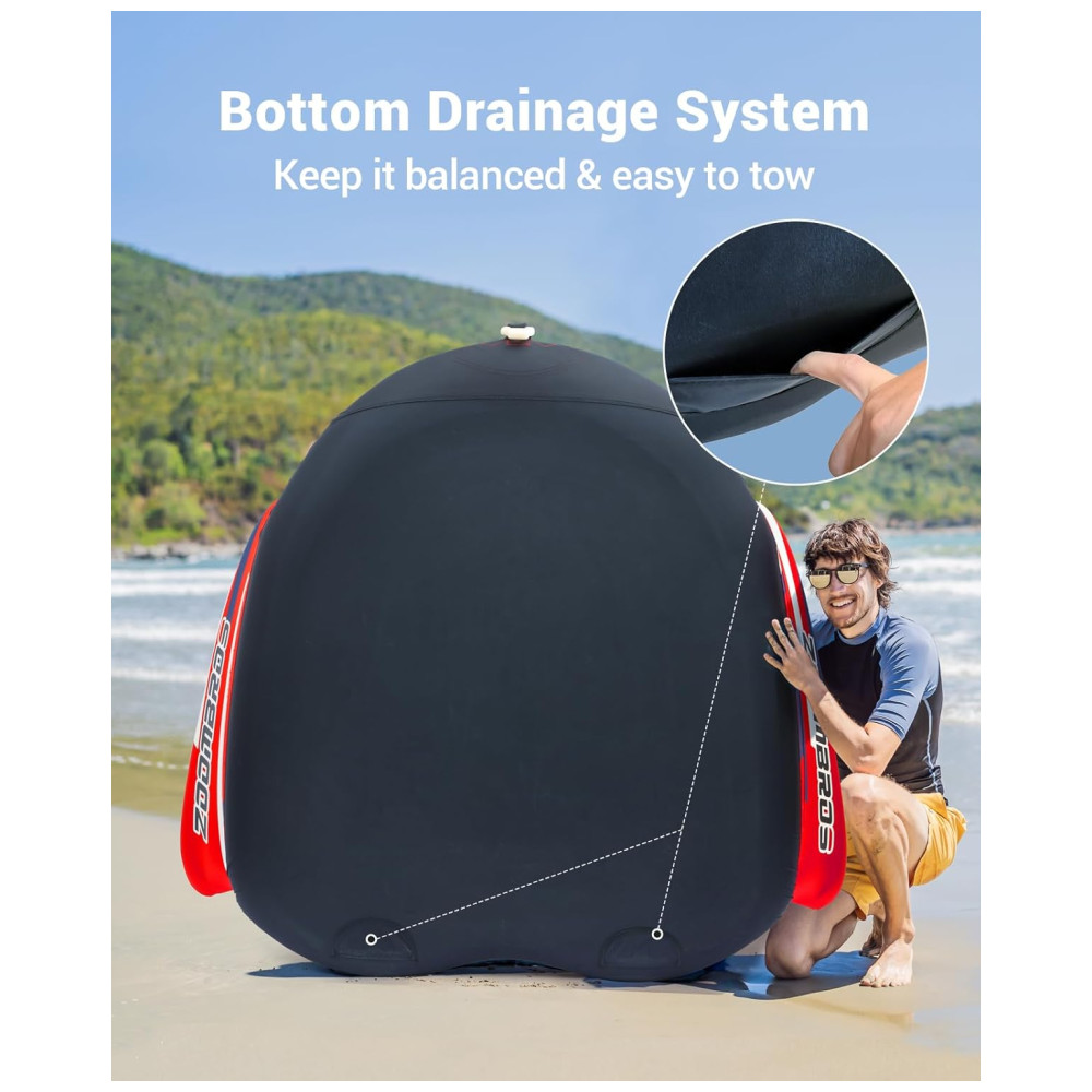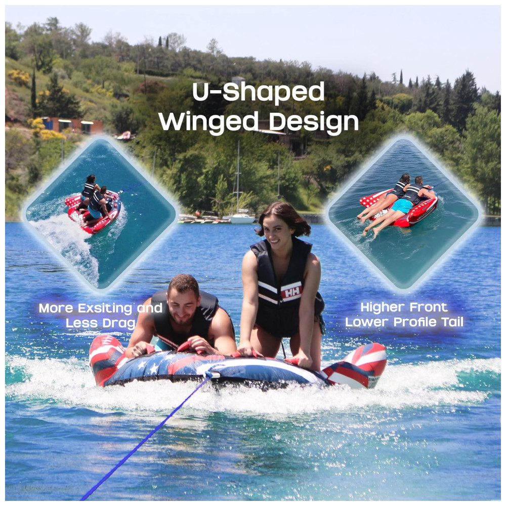 MAXIMIZE SUA EXPERIÊNCIA DE REBOQUE: Leve seu passeio rebocável para o próximo nível com eficiência e desempenho excepcionais. Nosso design inovador de corpo alado em forma de “U” proporciona um deslizamento suave sobre as ondas, resultando em um passeio mais emocionante e com menos resistência, permitindo que seu barco puxe o tubo com facilidade.
