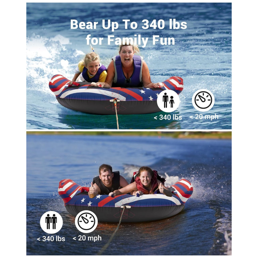 DIVERSÃO PARA QUALQUER PESSOA EM QUALQUER LUGAR: Com 69 polegadas (cerca de 175 cm), este grande tubo inflável oferece mais espaço do que outros modelos e acomoda confortavelmente 1-2 passageiros com peso total de até 340 libras 154 kg). Ideal para esportes aquáticos no mar, lago ou rio, este tubo rebocável proporciona diversão sem fim para todas as idades e níveis de habilidade.