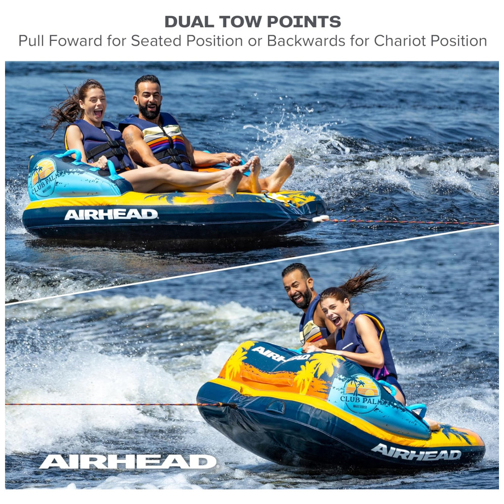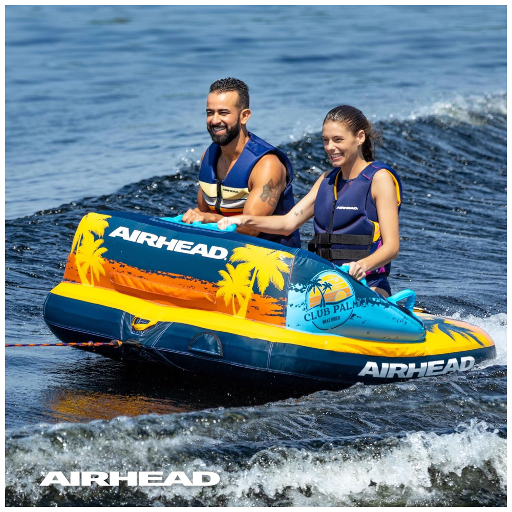Boia Rebocável para 2 Pessoas com Costura Dupla em Nylon Club Palm Azul e Laranja
