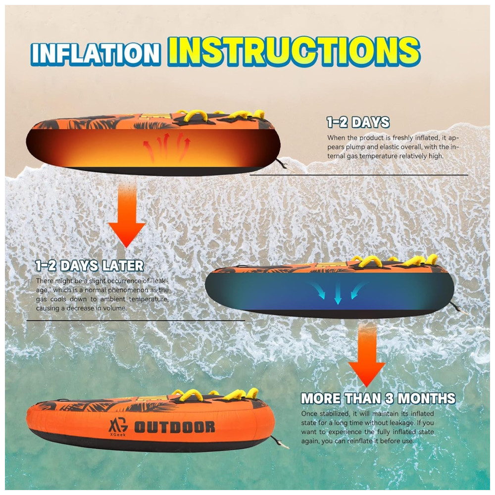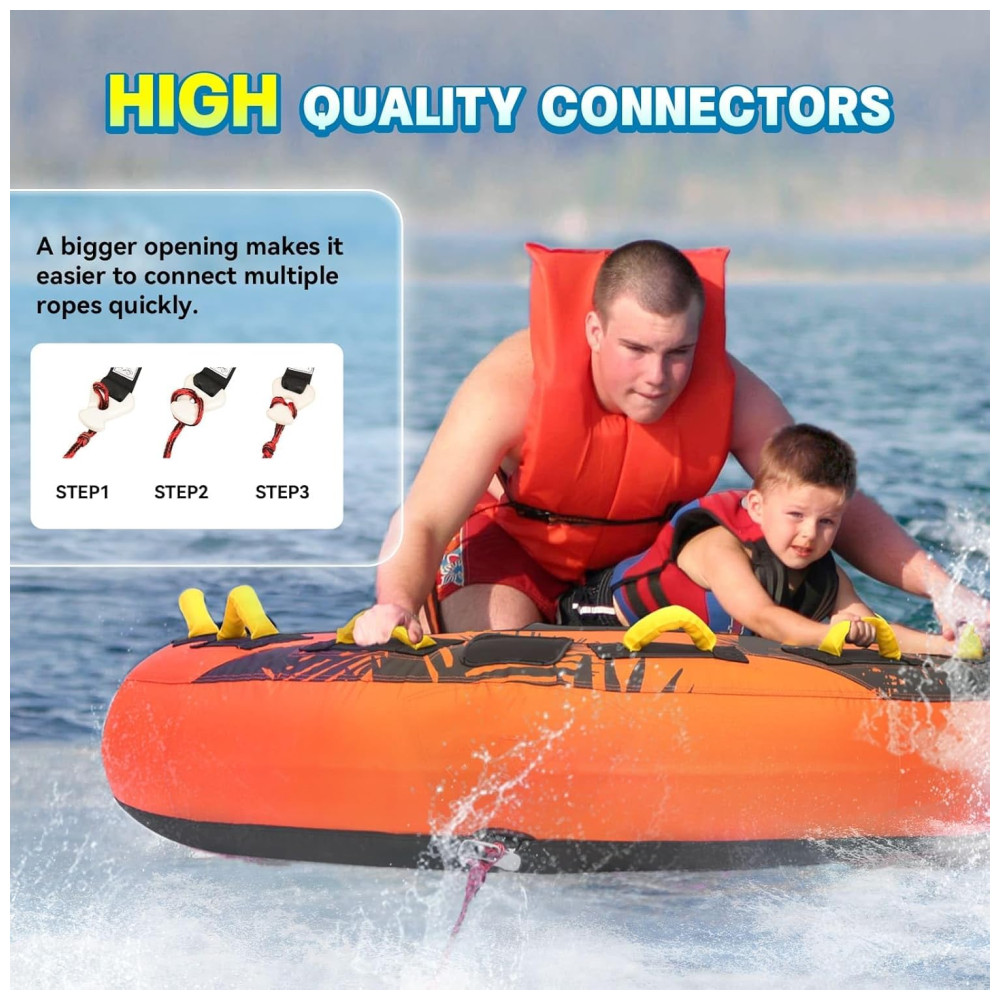 Conexão rápida: O tubo rebocável XGeek conecta-se facilmente às cordas de reboque, permitindo uma configuração rápida para que você esteja pronto para horas de diversão sem complicação.