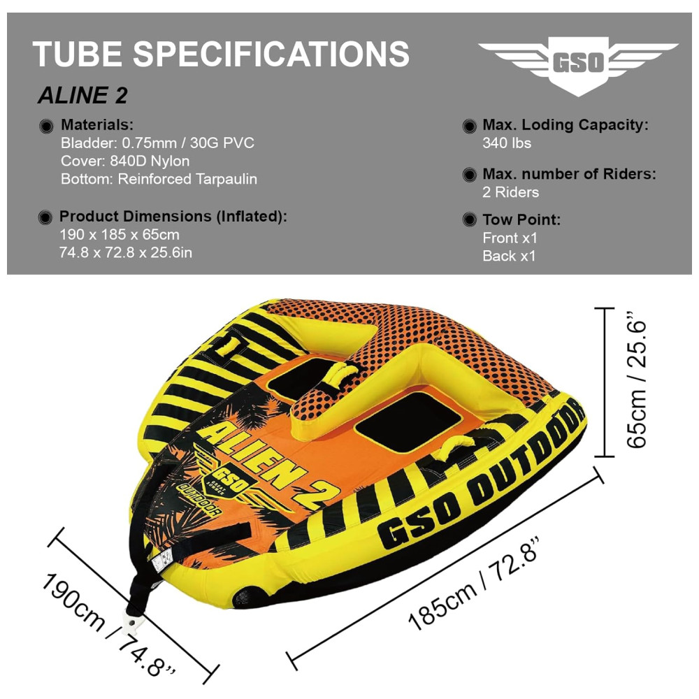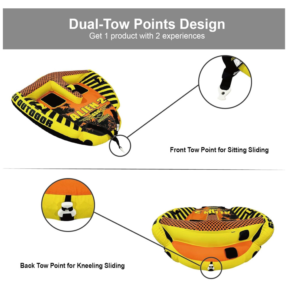 Boia Rebocável para Até 2 Pessoas com Pontos de Reboque Duplo GSO Amarelo e Laranja