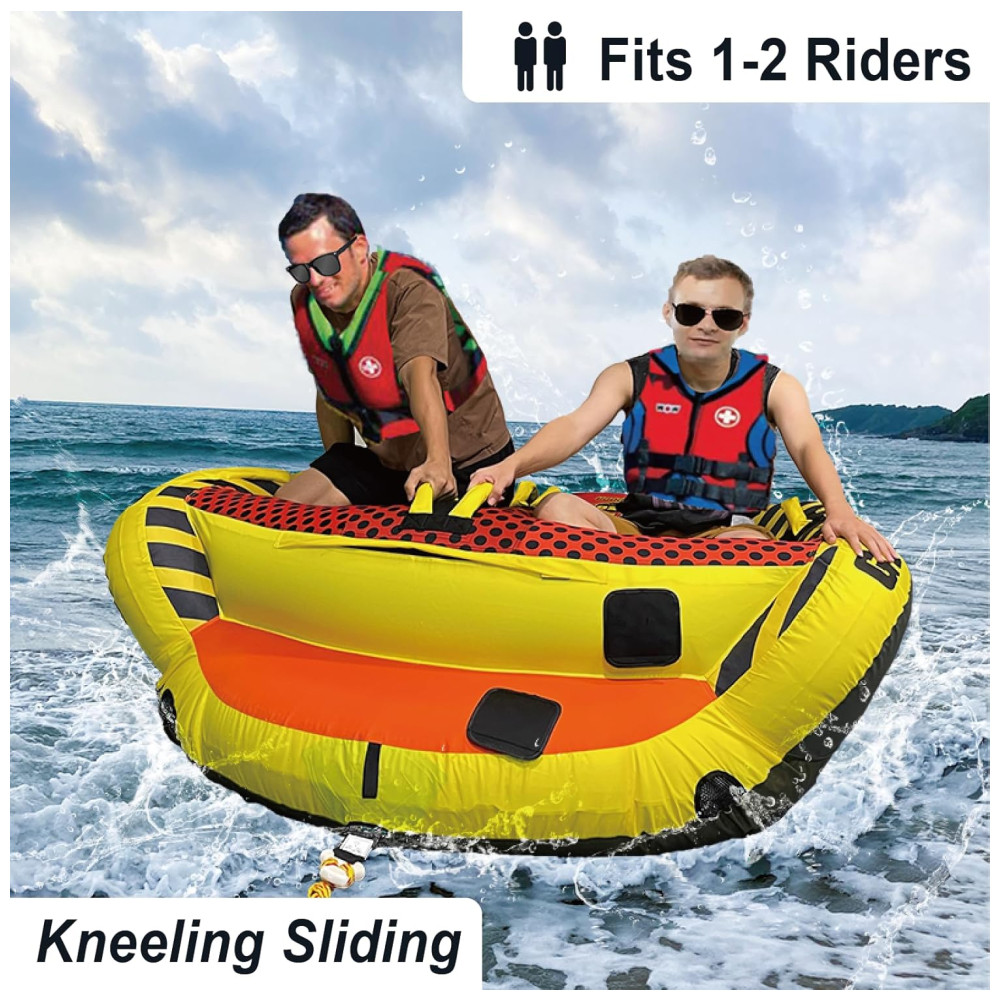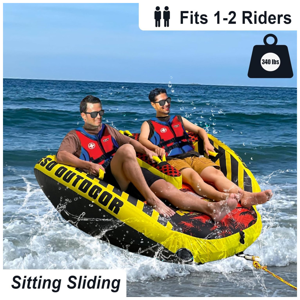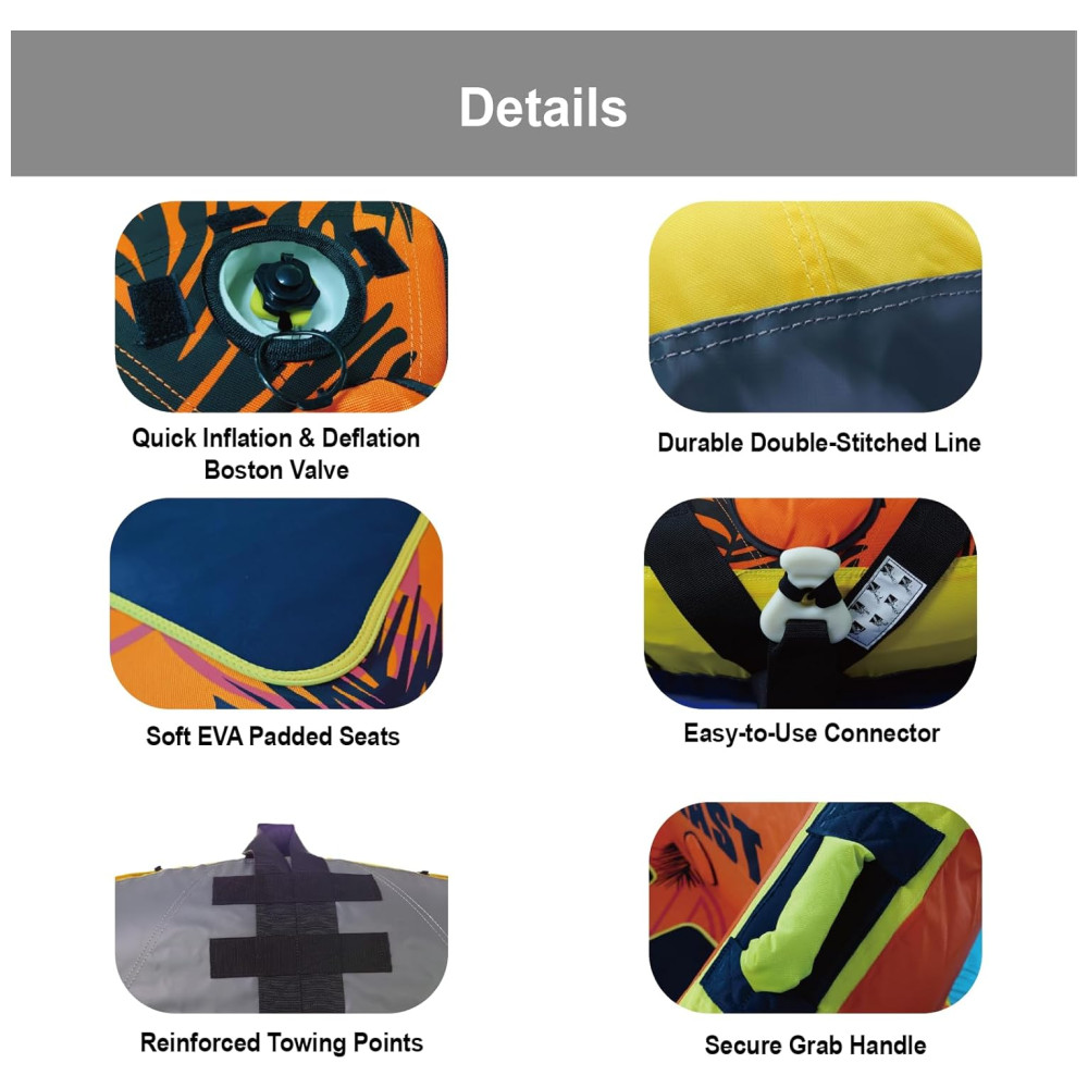 Perfeita para Entusiastas de Esportes Aquáticos: Com capacidade de 340 lbs (154 kg), a boia é ideal para até 2 pilotos, sendo perfeita para diversão em família ou competição amigável. Sua construção robusta e recursos de segurança fazem dela uma escolha essencial para quem ama passeios de barco e tubing.