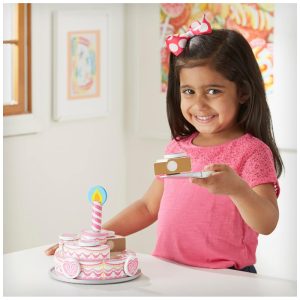 Bolo Infantil de Camadas Triplas em Madeira com Coberturas Misturadas e Combinadas para Crianças Acima de 3 Anos Melissa & Doug