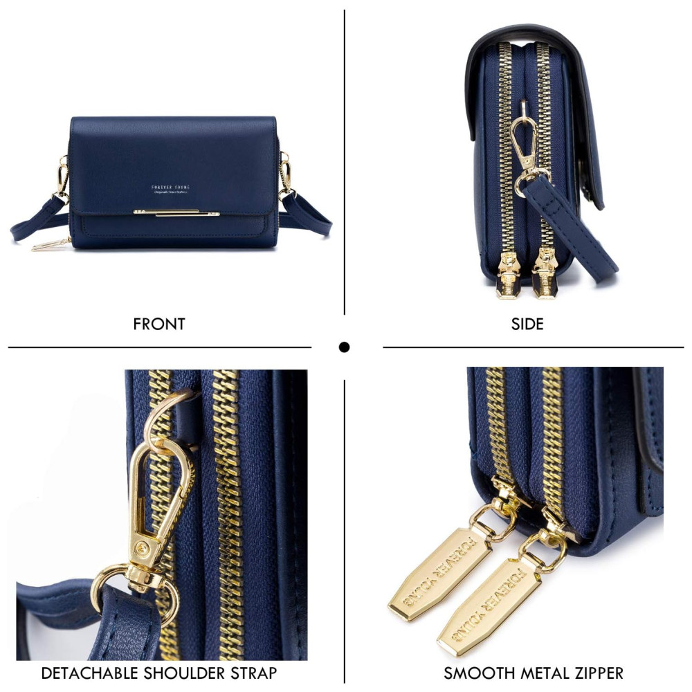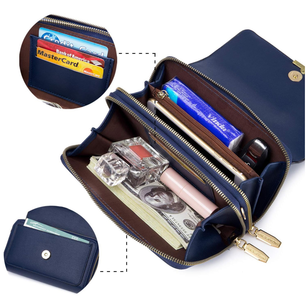 TAMANHO PEQUENO, MAS ESPAÇO DA SALA 2 bolsos principais com zíper e 1 bolso interno para moedas com zíper, capaz de zenar suas necessidades diárias, como telefone, chaves, batons, dinheiro, moedas, guardanapo e outros itens pequenos. 3 slots para cartões. para cartões de crédito, RG, carteira de motorista. 1 x cartões de bolso frontal, talão de cheques, passaporte, recibo.