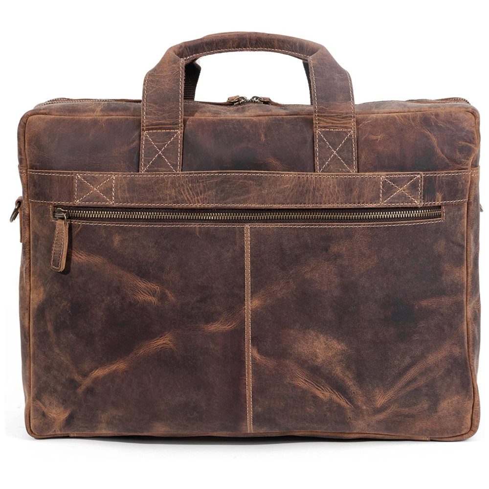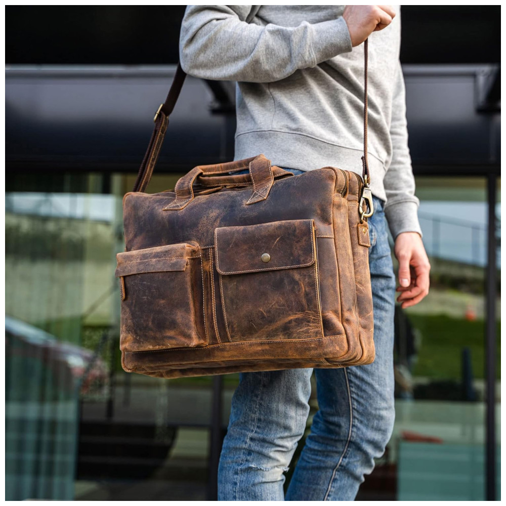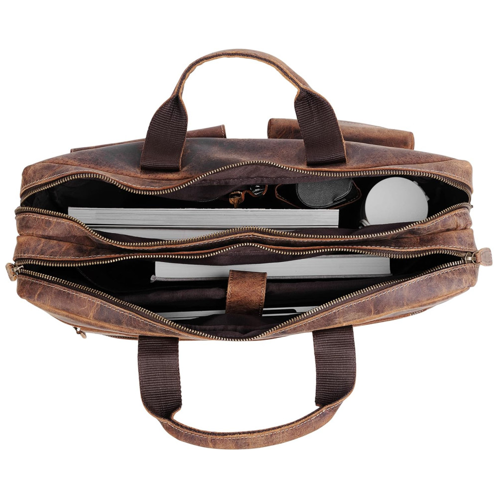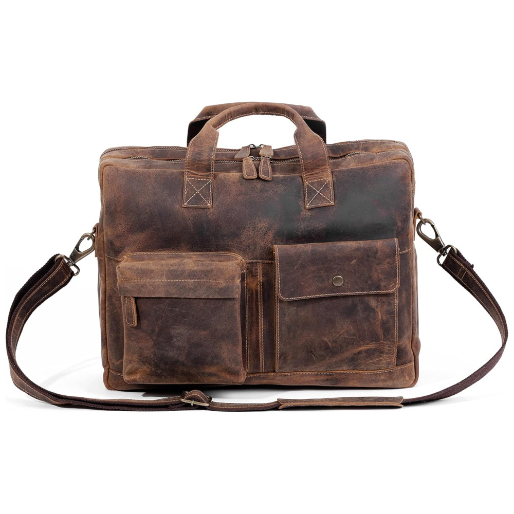 Bolsa Carteiro Masculina Couro de Búfalo para Laptop com 18 Polegadas Komal s Passion Leather Marrom