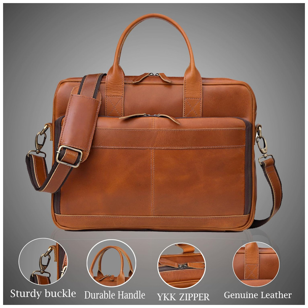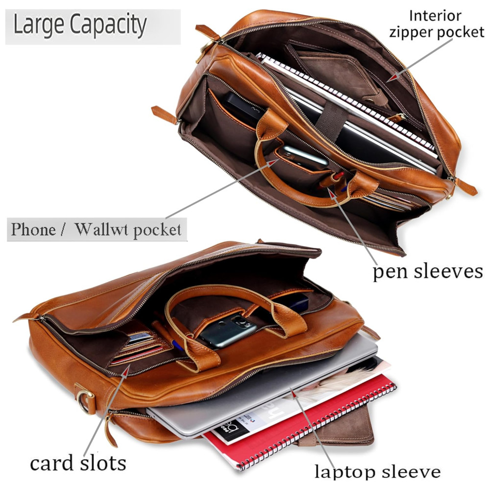 USO PERFEITO: Com um uso multifuncional e um visual elegante e desgastado de inspiração vintage que nunca sai de moda, esta bolsa é uma ótima ideia de presente para o Dia dos Pais, aniversários, Dia dos Namorados, Natal, formatura, volta à faculdade ou qualquer ocasião que exija um presente. É um ótimo presente para profissionais, artistas, estudantes e todos os tipos de funcionários. A bolsa pode ser usada como bolsa mensageiro de couro para homens e mulheres, pasta para laptop, bolsa universitária, bolsa de reunião, ideia de presente.